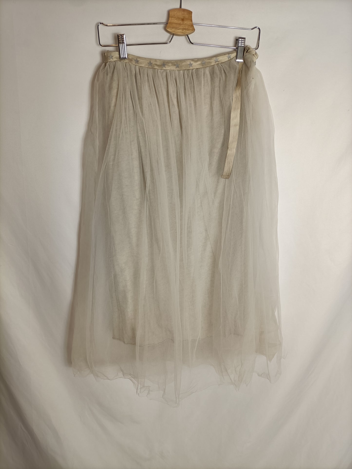 falda midi beige de tull cruzada.