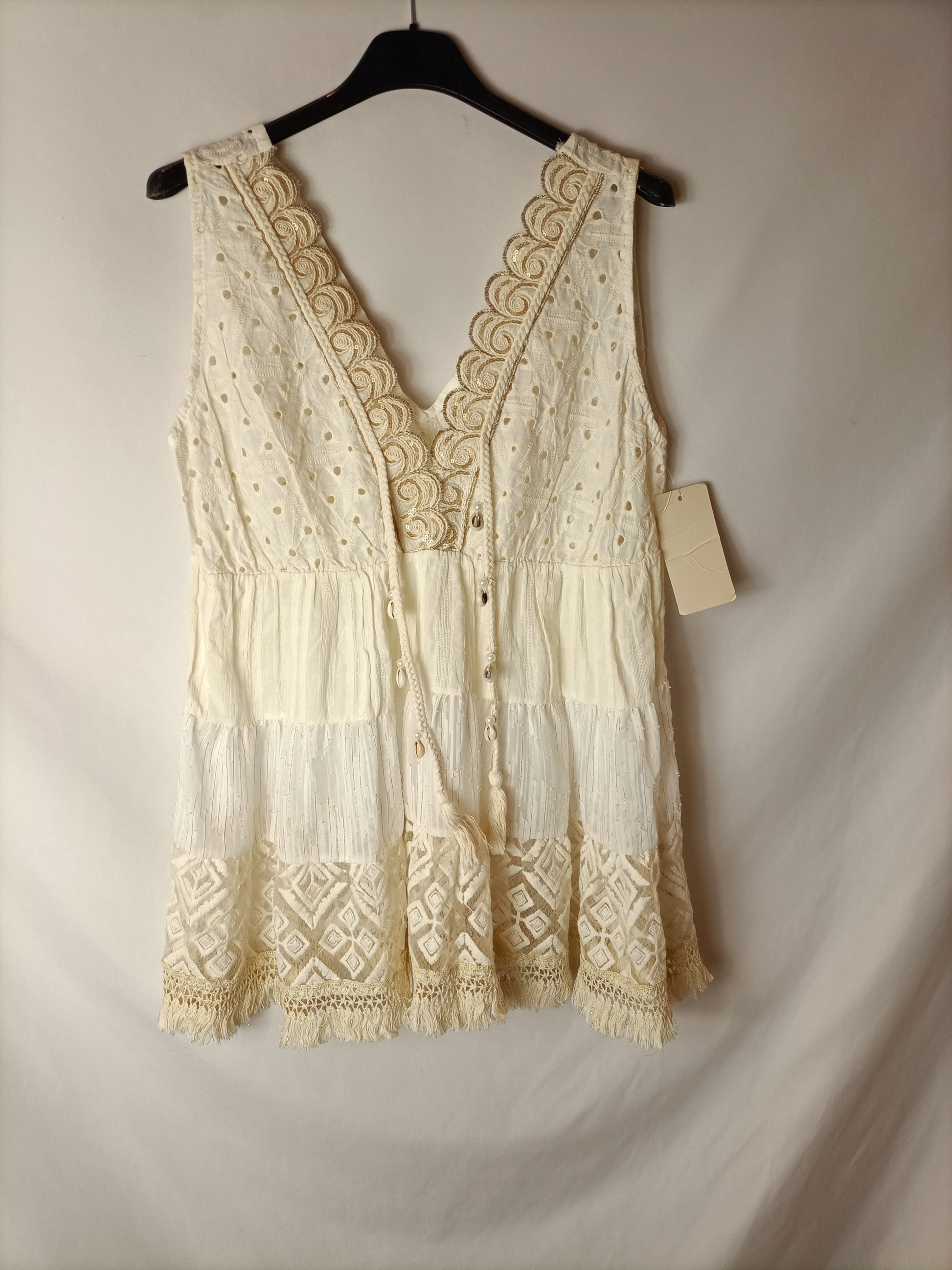NUEVO CON ETIQUETA. Top texturas troquelado varias tejidos. Cuerdas con conchas.