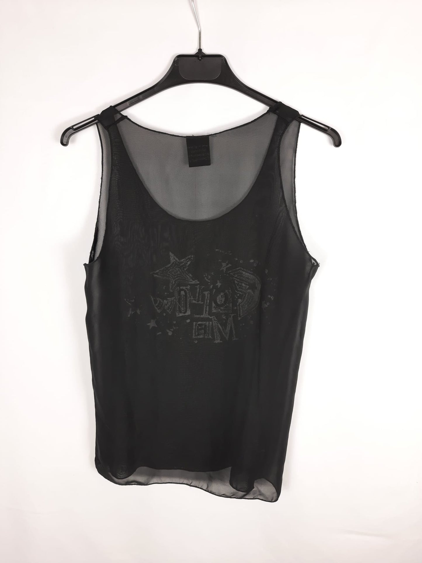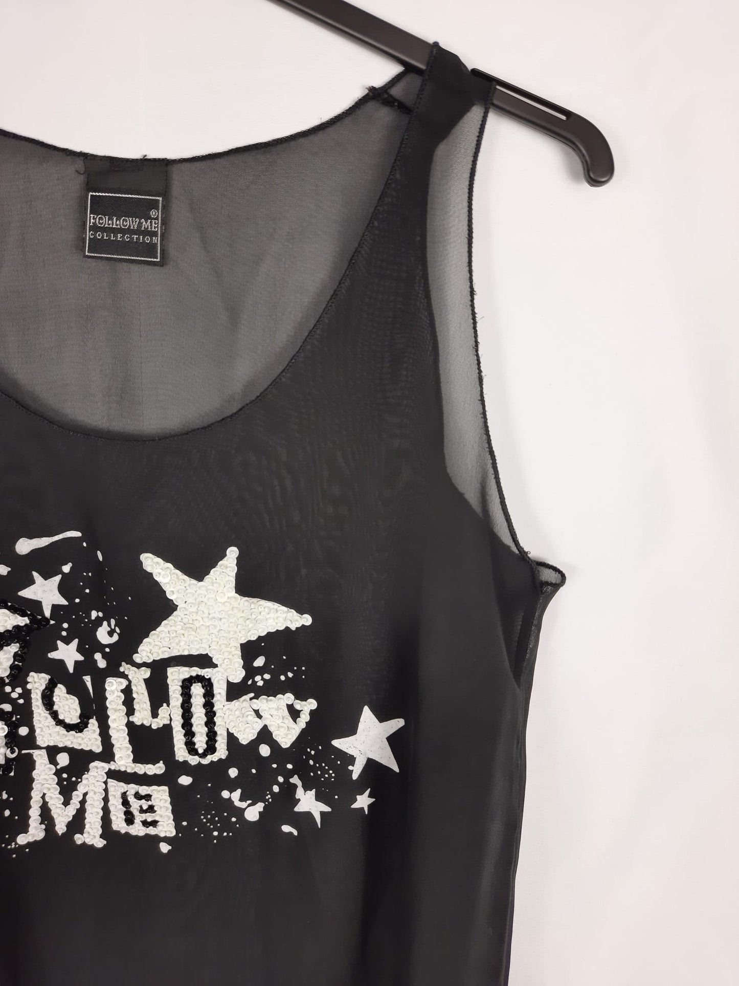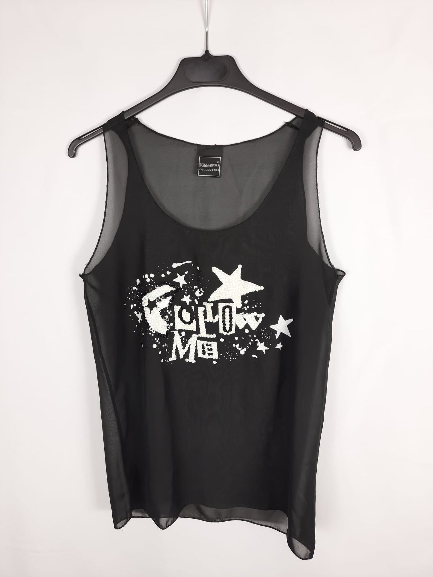 Follow me. Top negro semitransparente con detalle de pedrería. Elástico. Largo 67 cm