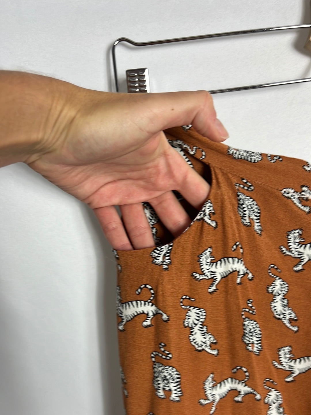 Pantalón fluido estampado tigres aperturas. Tejido no elástico