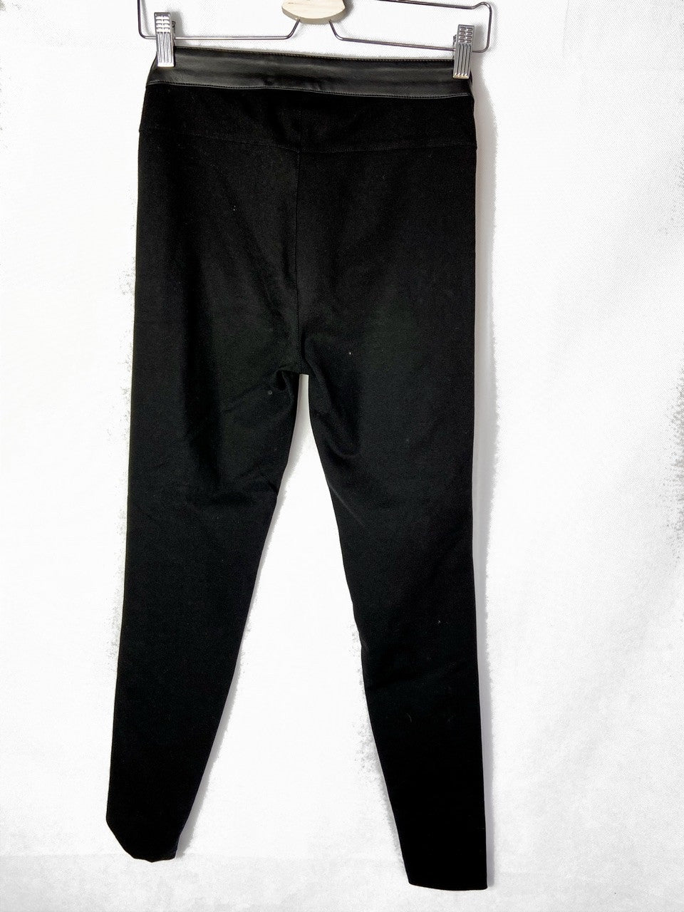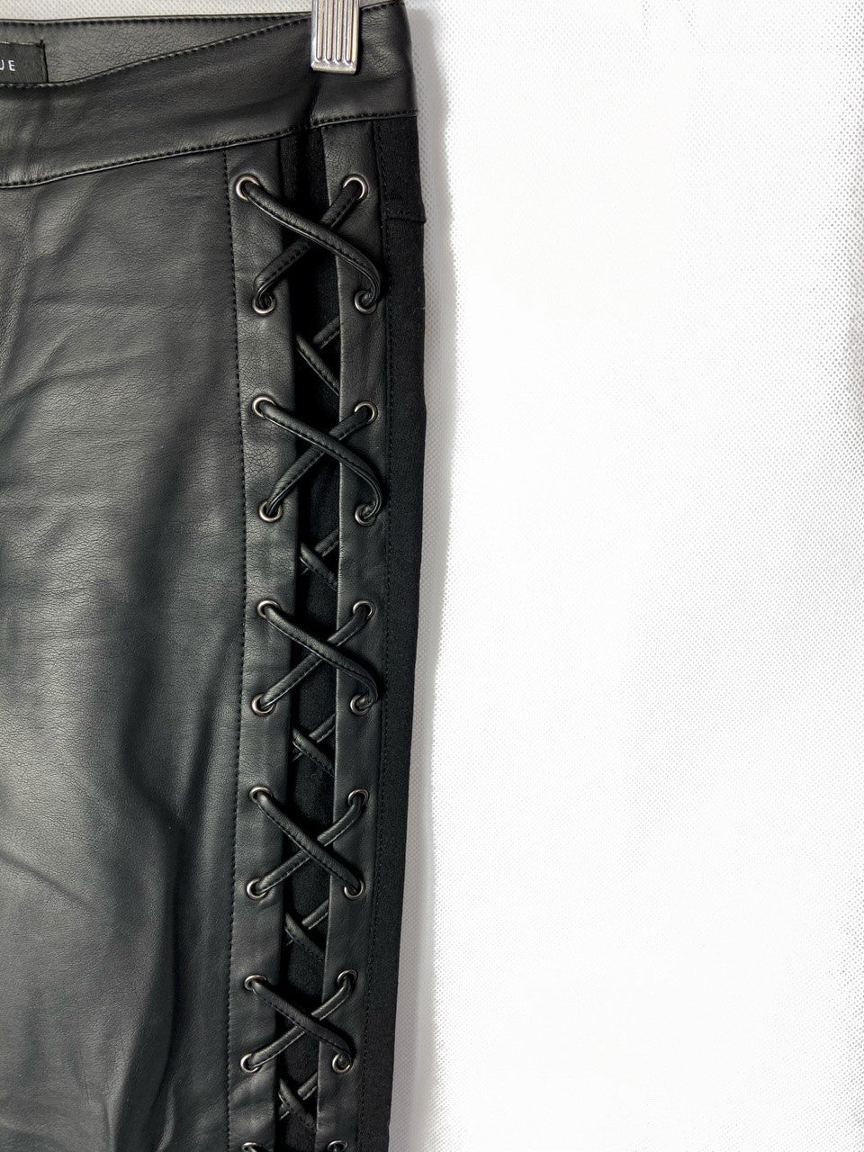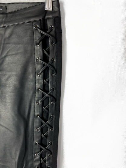 Pantalón pitillo de cuero con los laterales con cuerdas y por detrás son de antelina.