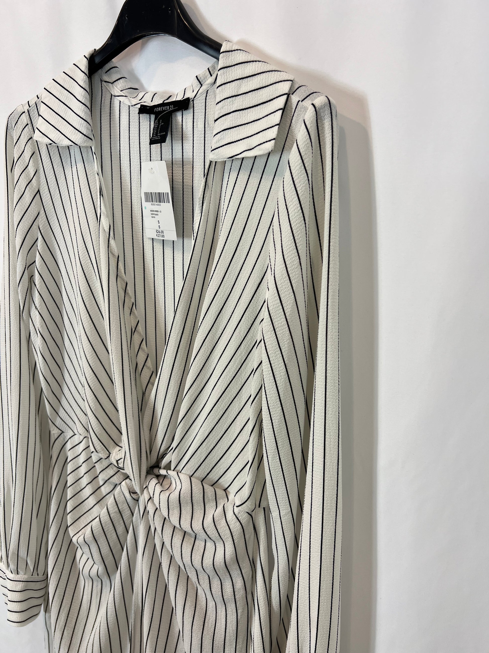 NUEVO CON ETIQUETA. vestido largo blanco con exterior abierto e interior cortito. Detalle de nuevo central. Largo 142cm, cintura 35cm