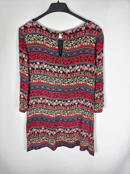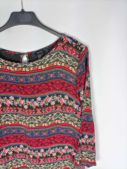 Forever21. Vestido corto con varios estampados. No elástico. Fluido. De sisa a sisa 44 cm largo 73 cm