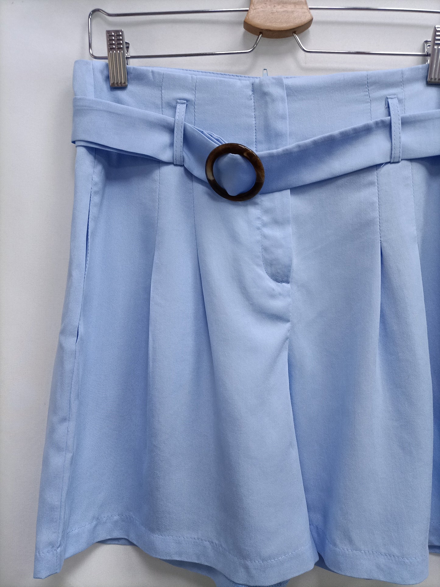 NUEVO CON ETIQUETA. Pantalón corto estilo bermudas celeste con cinturón. cintura 38 cm largo 46 cm