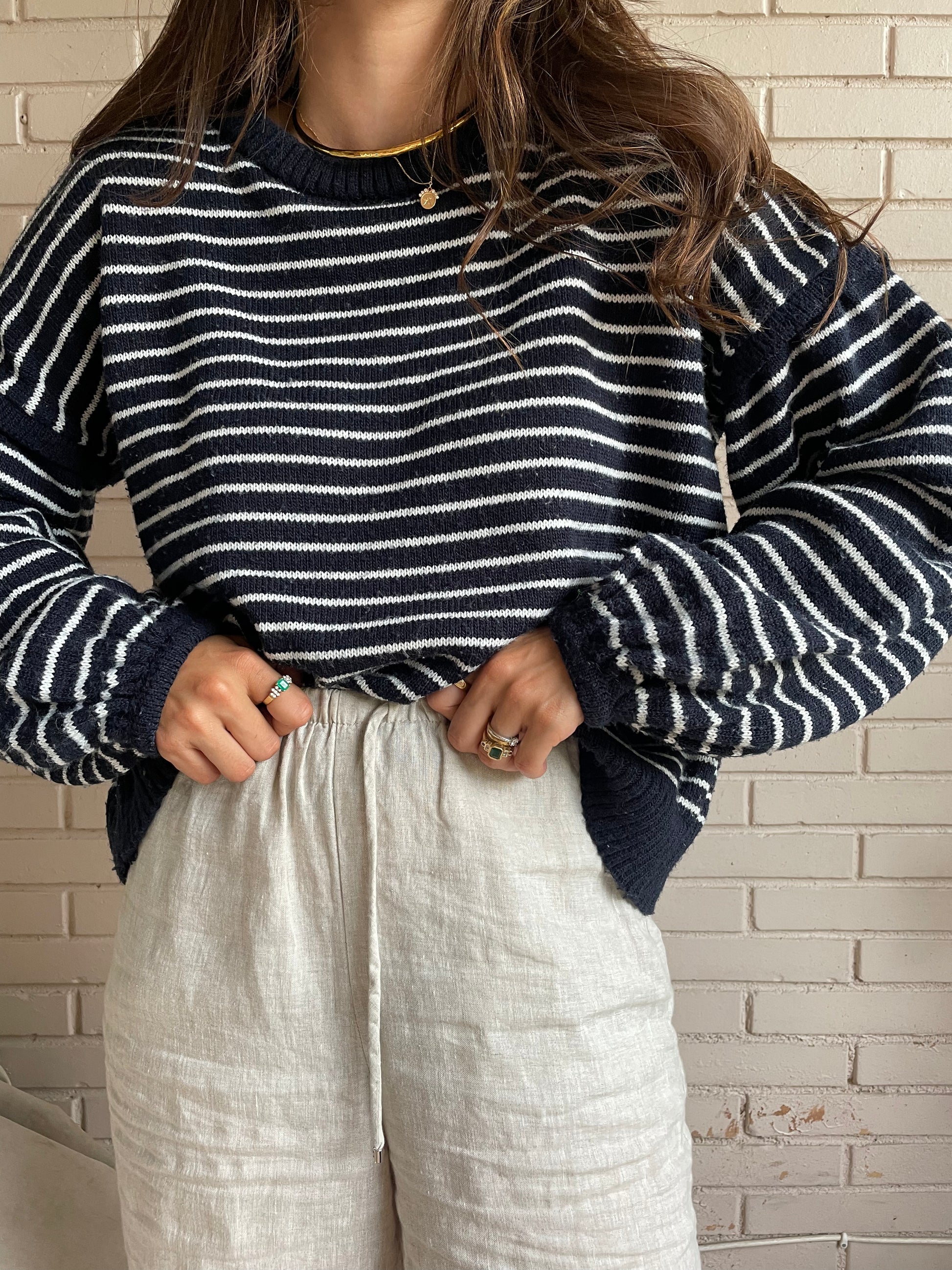 FÓRMULA JOVEN.Jersey azul marino rayas T.40