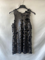 Vestido corto de lentejuelas negras, no es elástico, se abrocha con cremallera trasera. De sisa a sisa 42 cm, largo 74 cm. SIN ESTRENAR