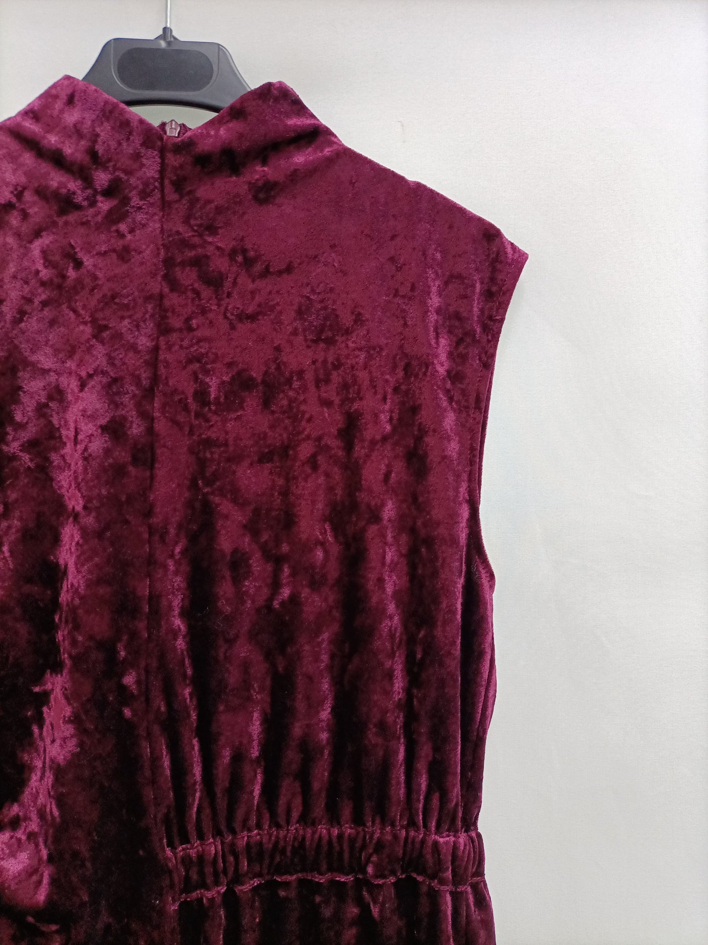 Vestido corto de terciopelo burdeos con apertura lateral y cintura fruncible. elástico. largo 93 cm
