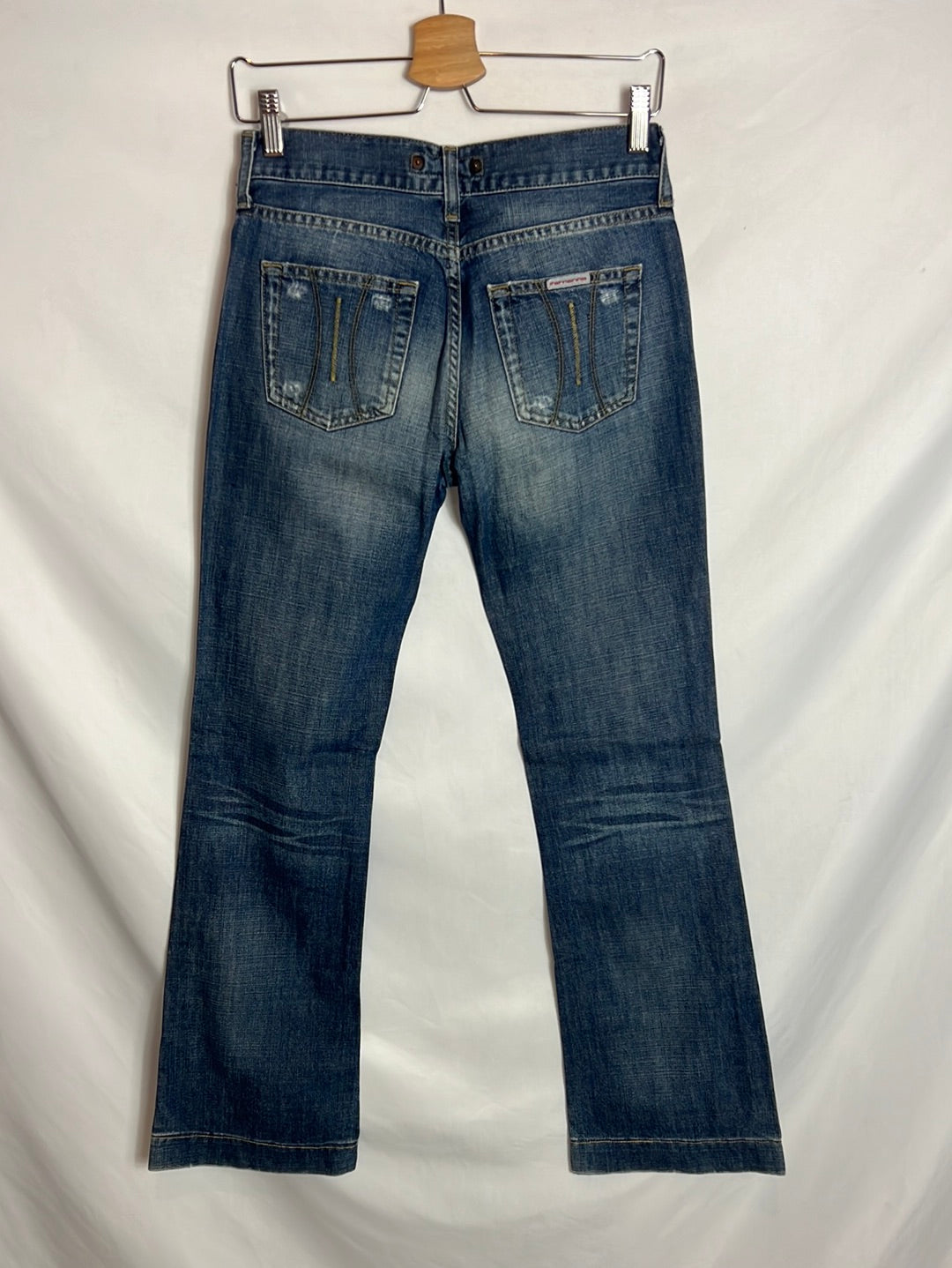 pantalón vaquero campana efecto desgastado. cintura 36cm, largo 102cm