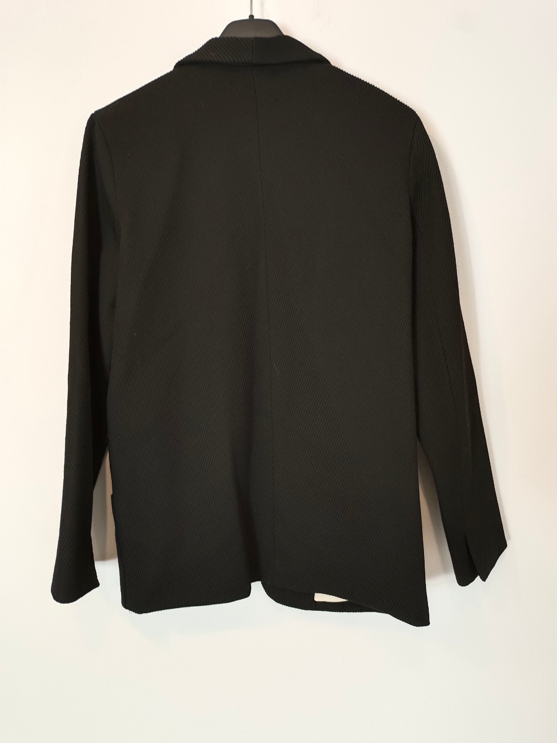 Blazer negra lana. textura rayas relieve. de sisa a sisa 44 cm largo 64cm