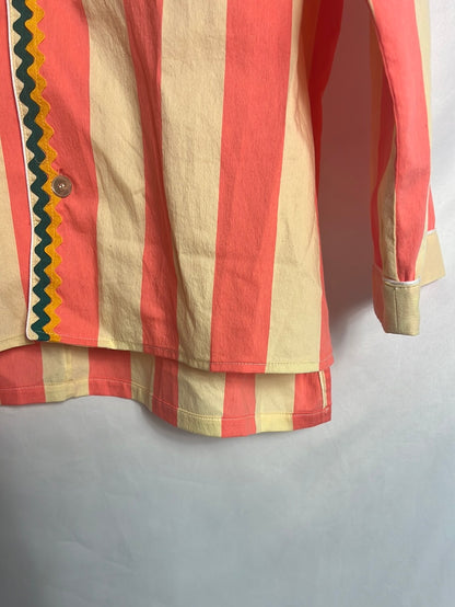 Camisa estilo pijamero rayas con detalles flúor Largo parte trasera 70cm