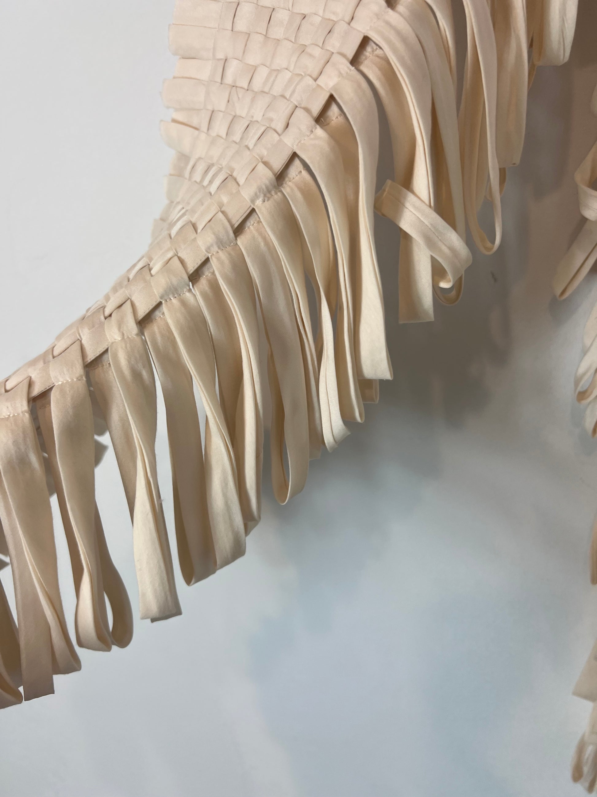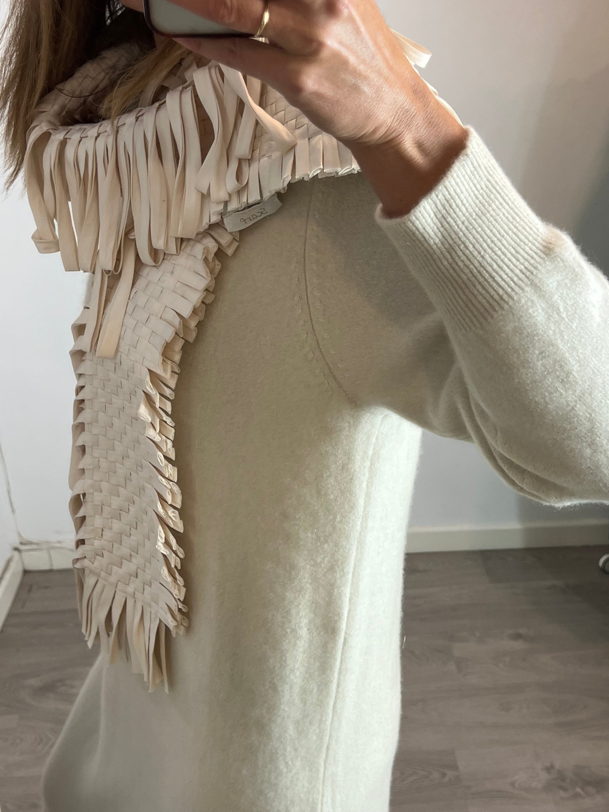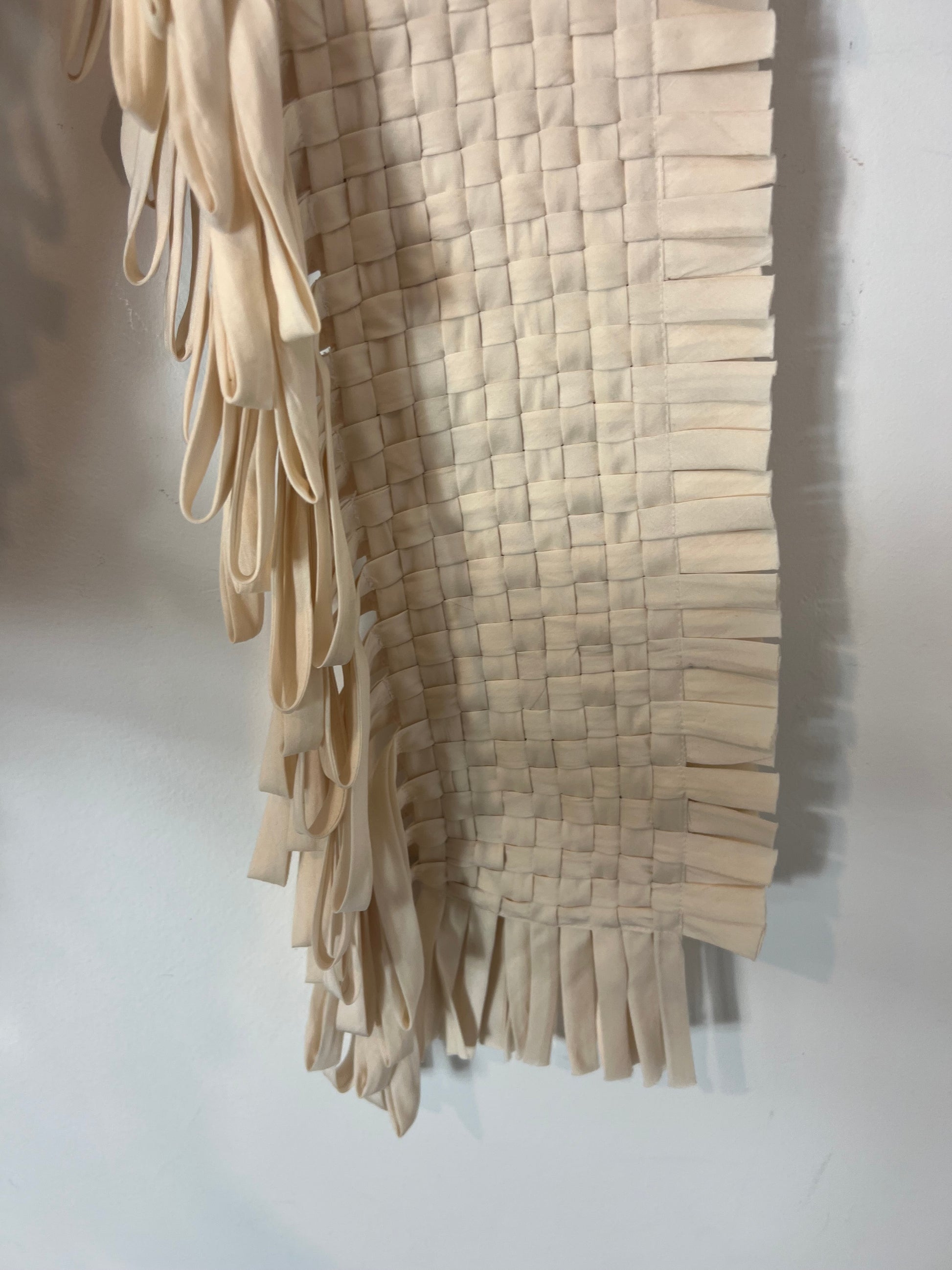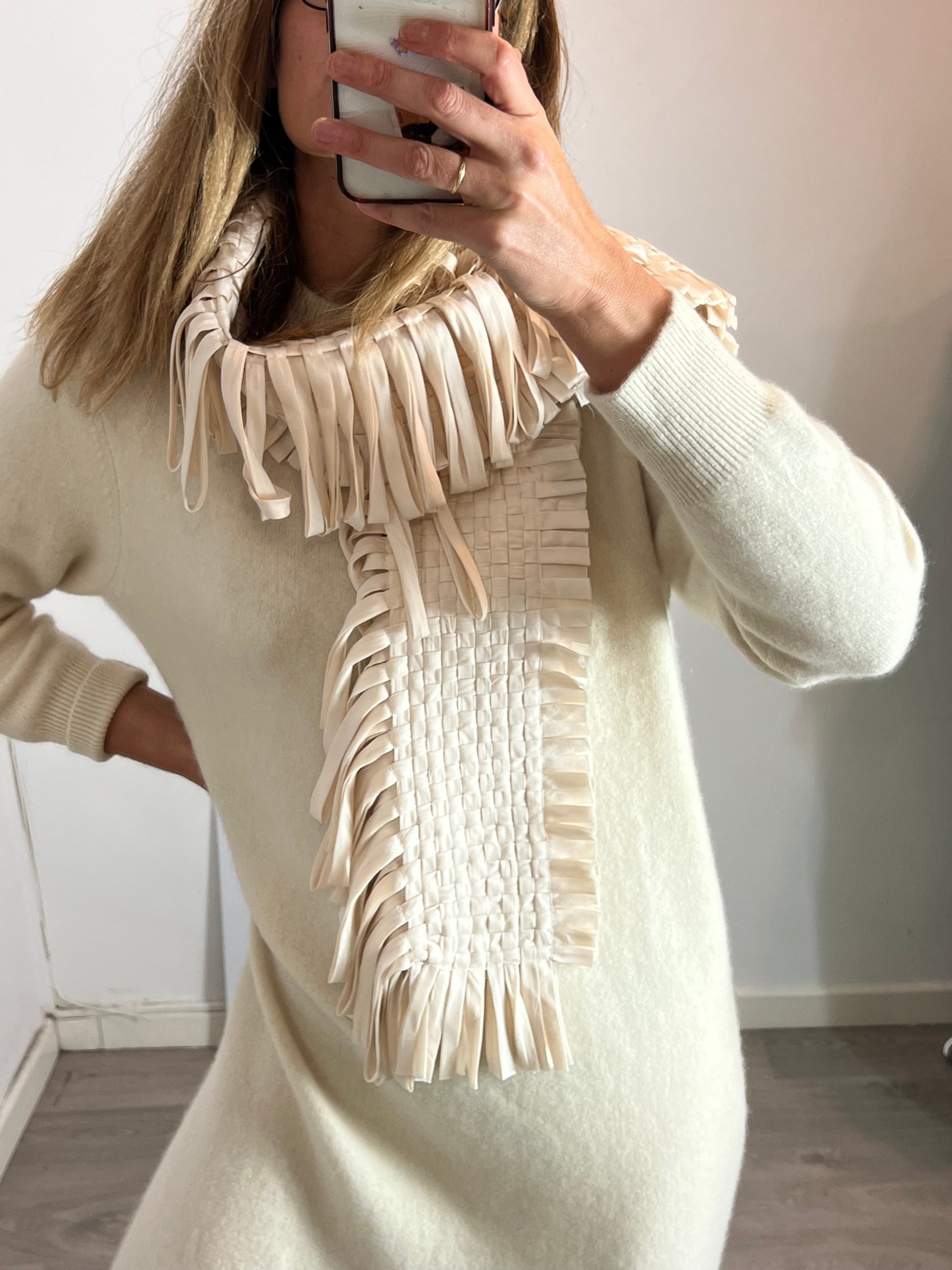 Bufanda trenzada 60% seda. Largo 146cm incluyendo flecos