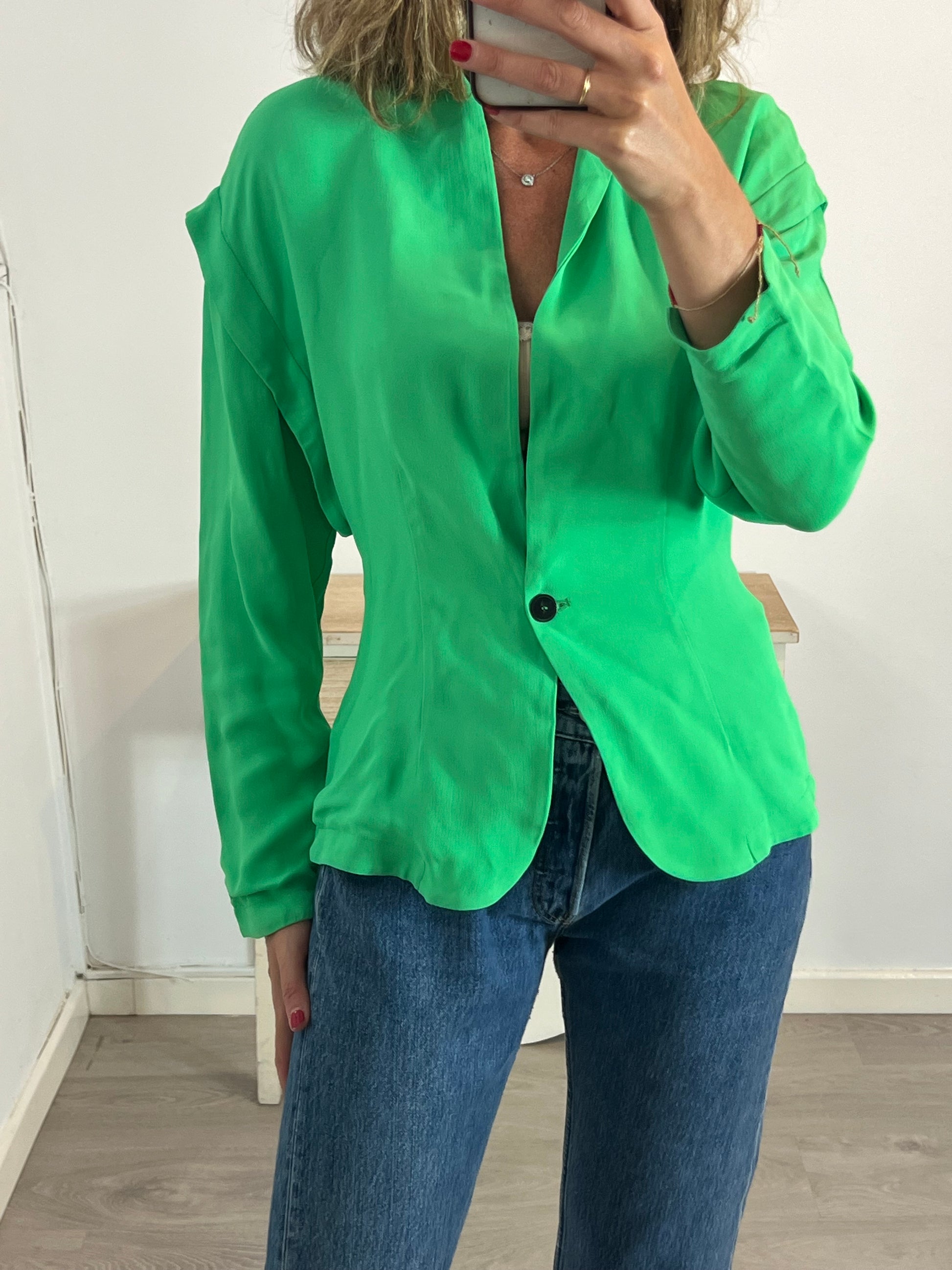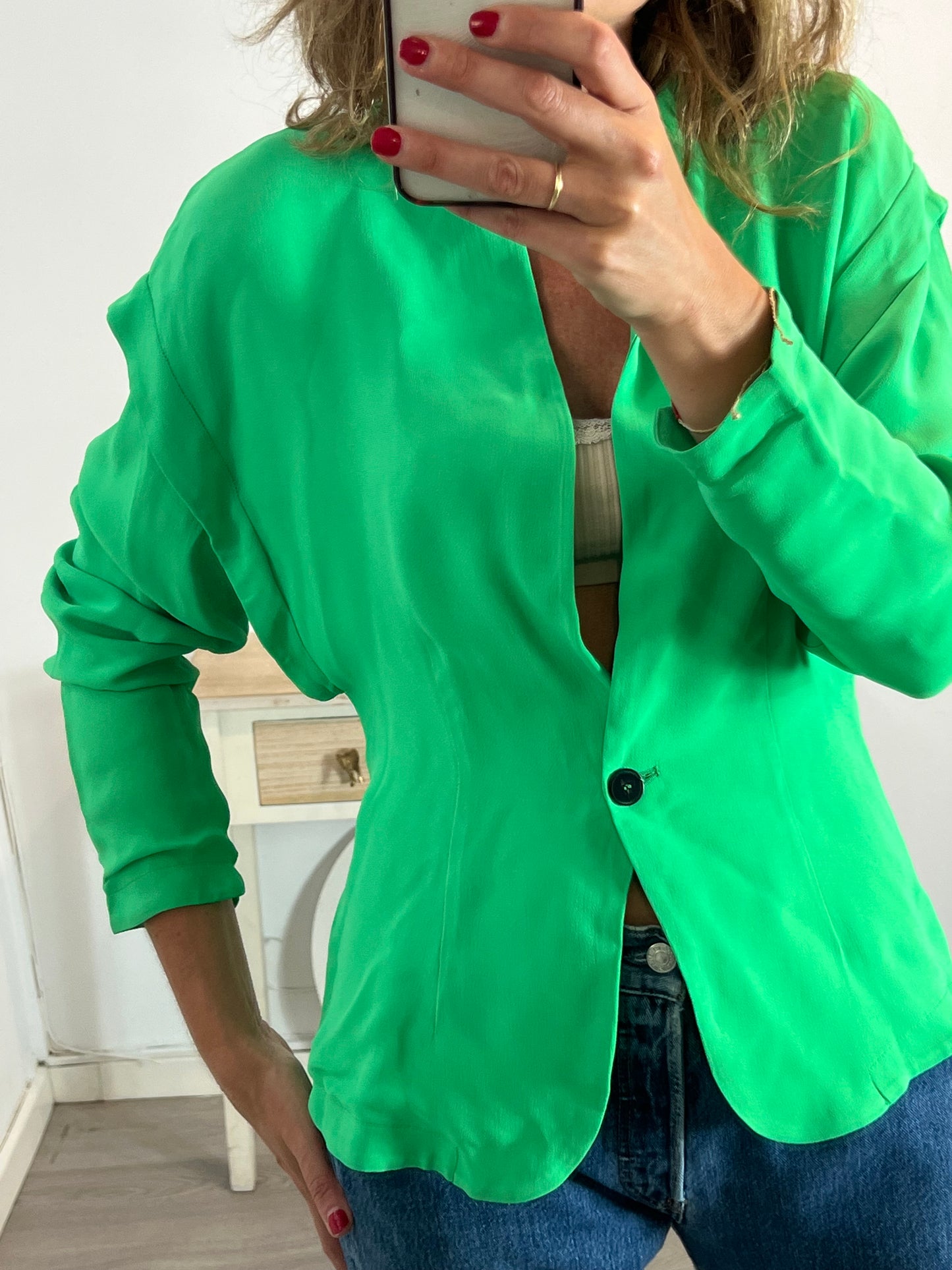 Chaqueta verde fluida detalle hombros. hombros 57cm largo 64cm
