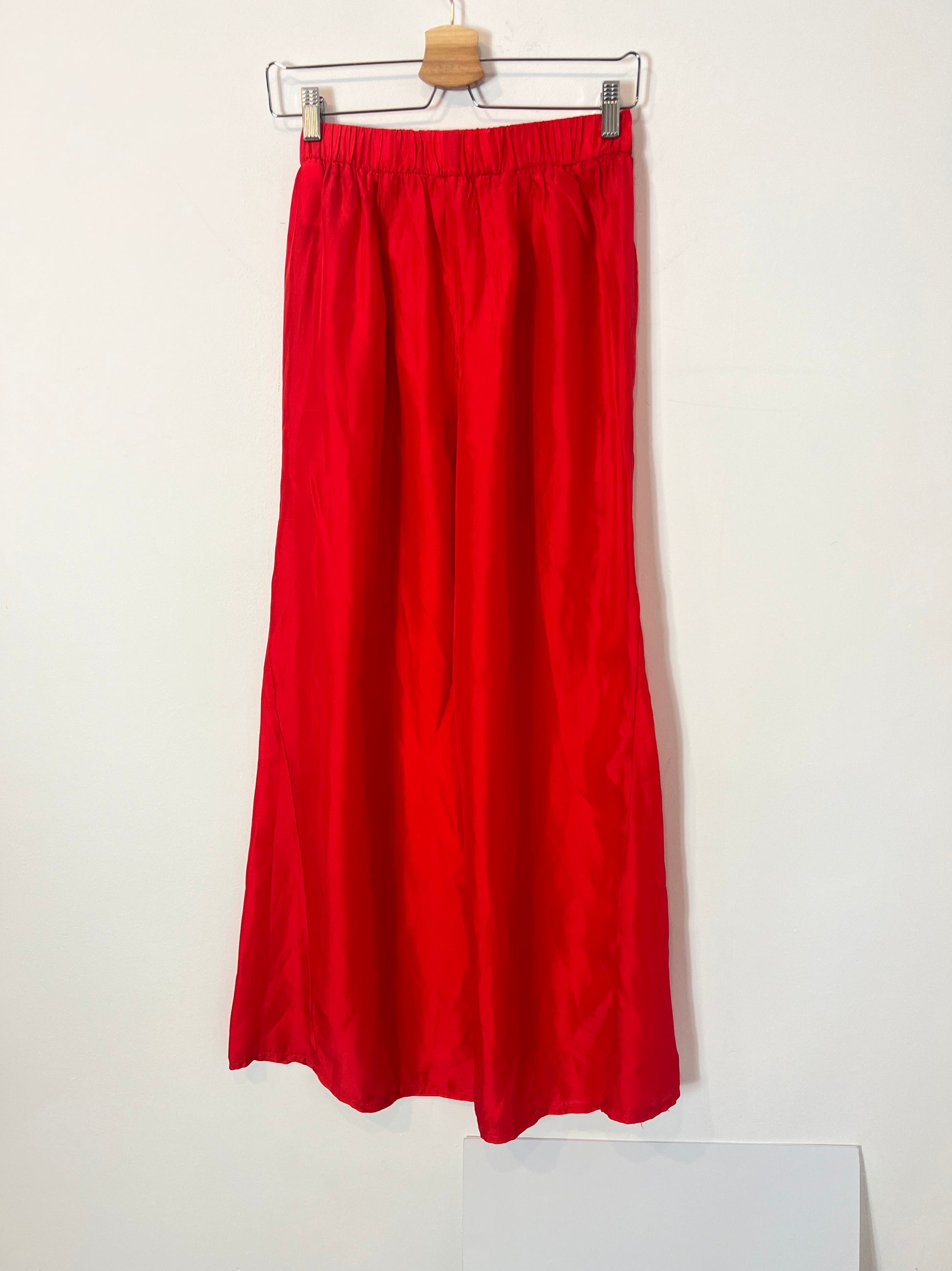 Pantalón seda rojo panta ancha fluido. Cibtura 33cm, largo 112cm