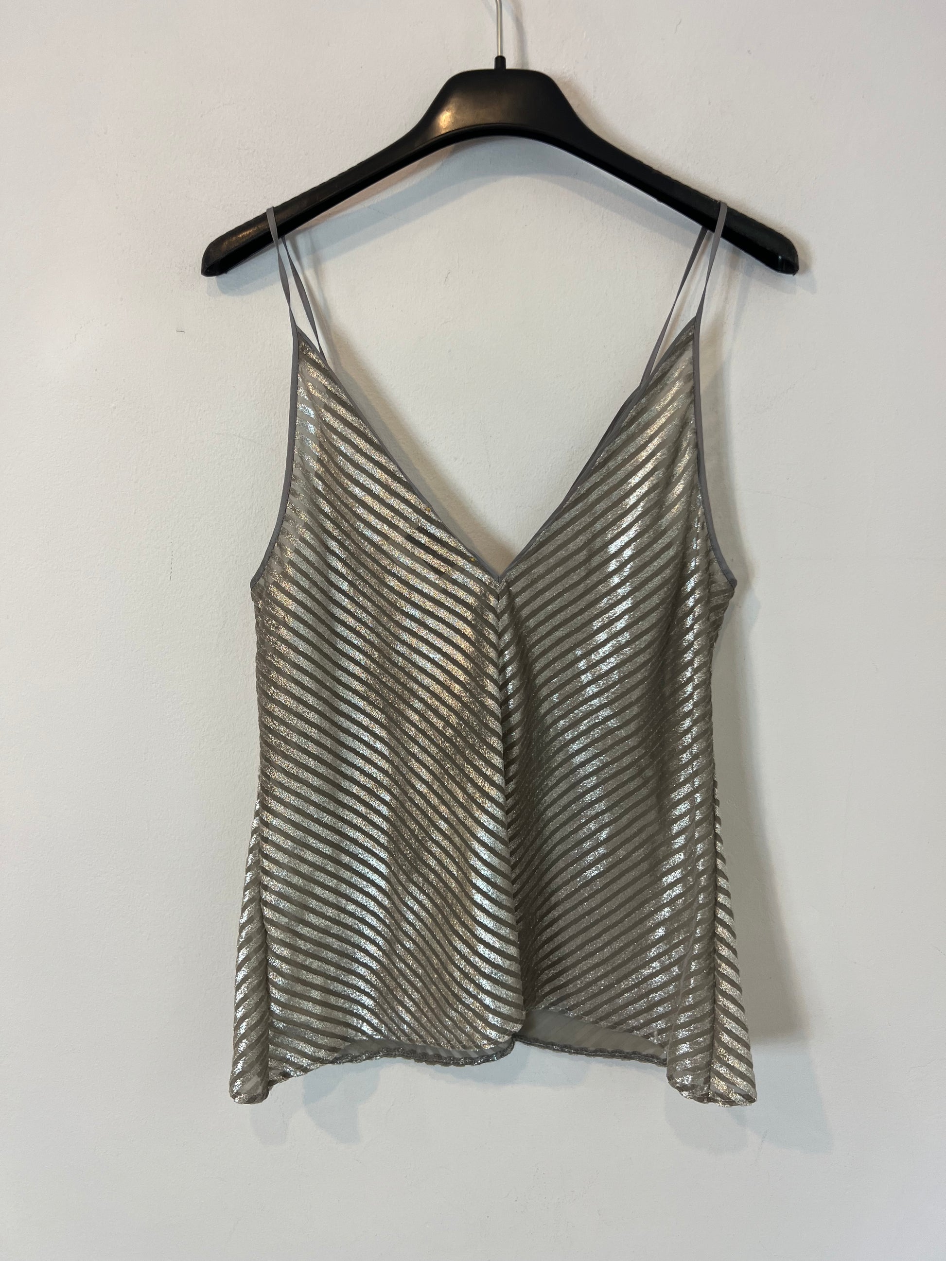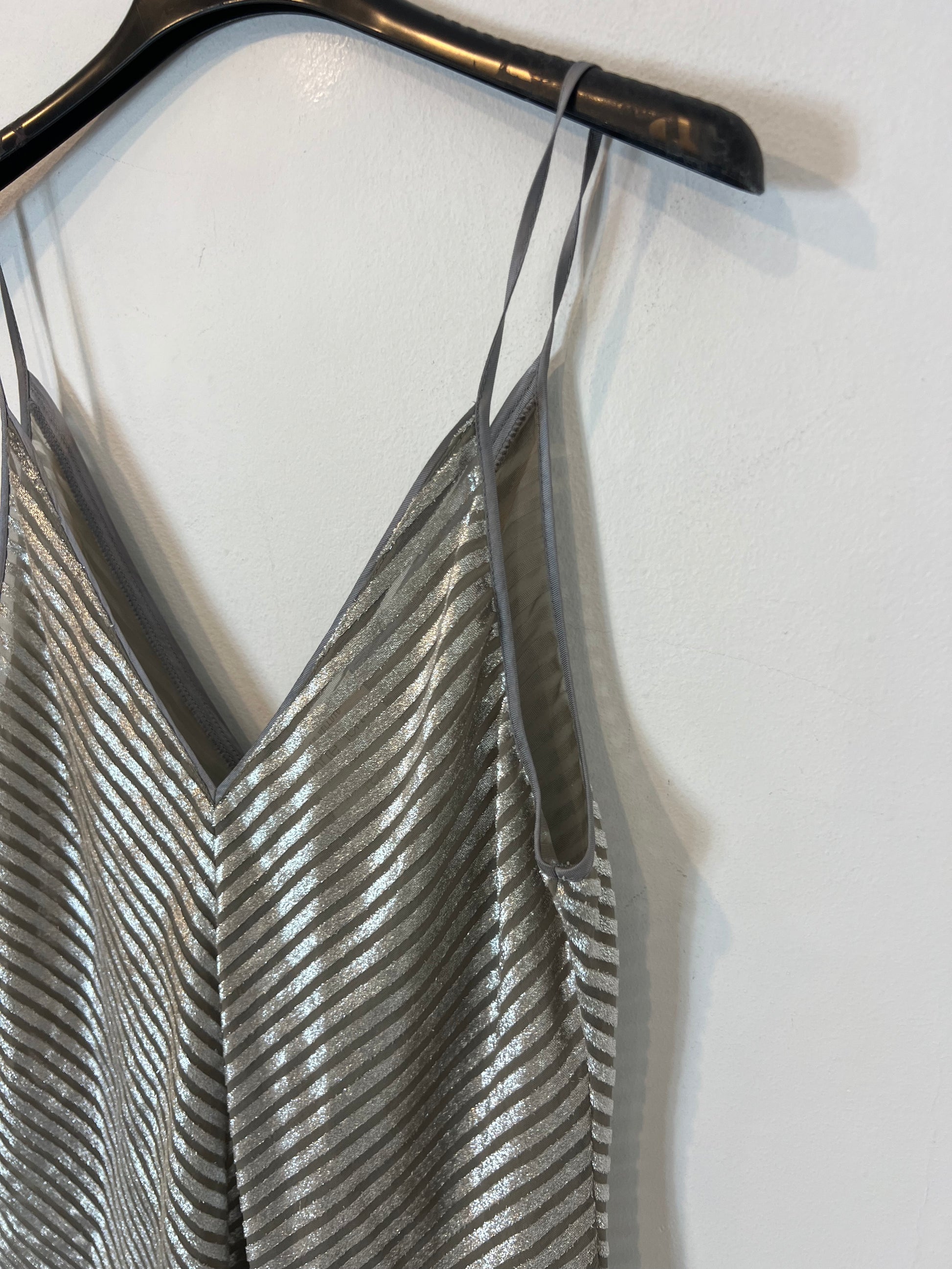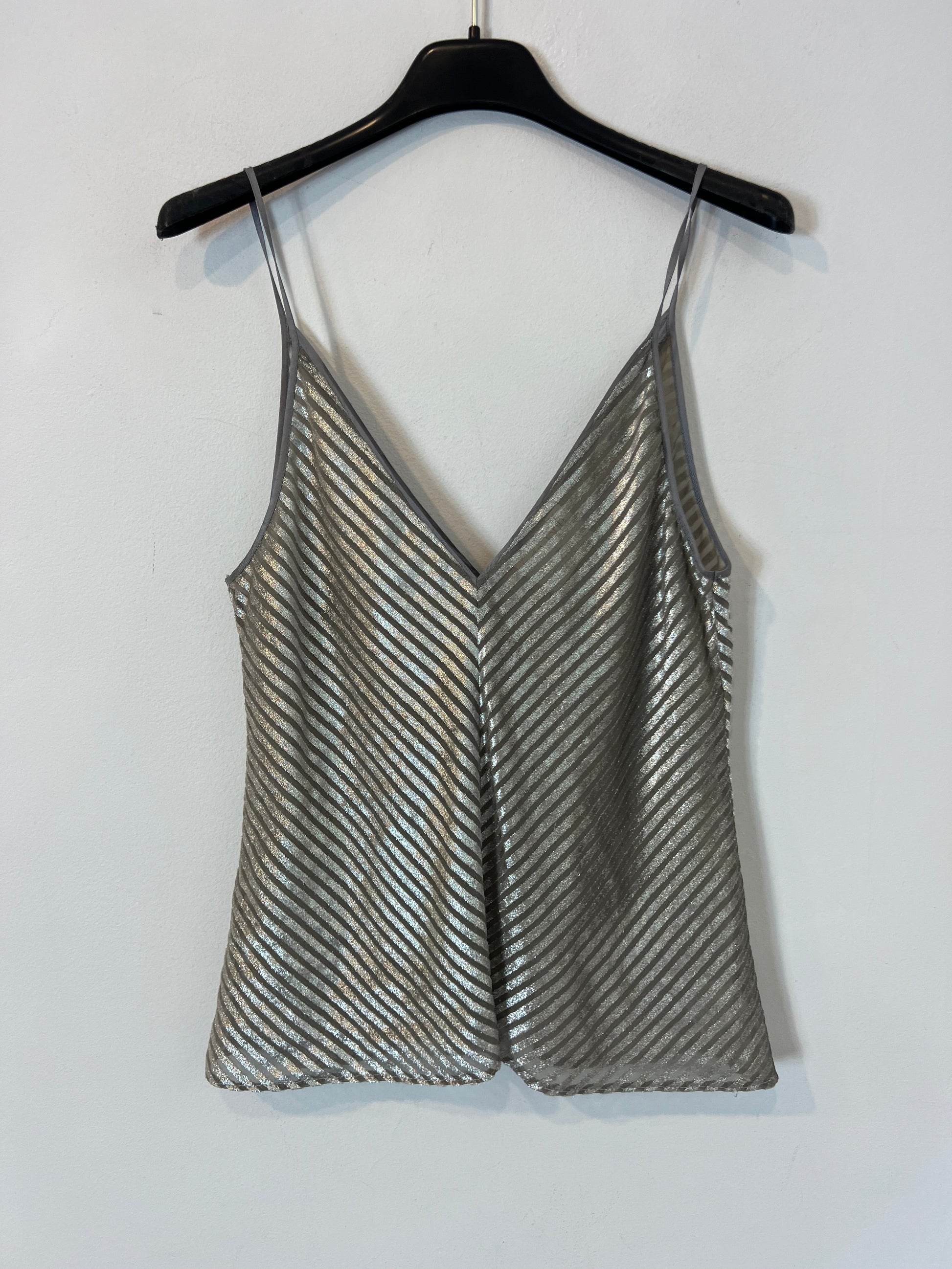 top fluido plateado. detalle de hilos. de sisa a sisa 45 cm largo 57cm