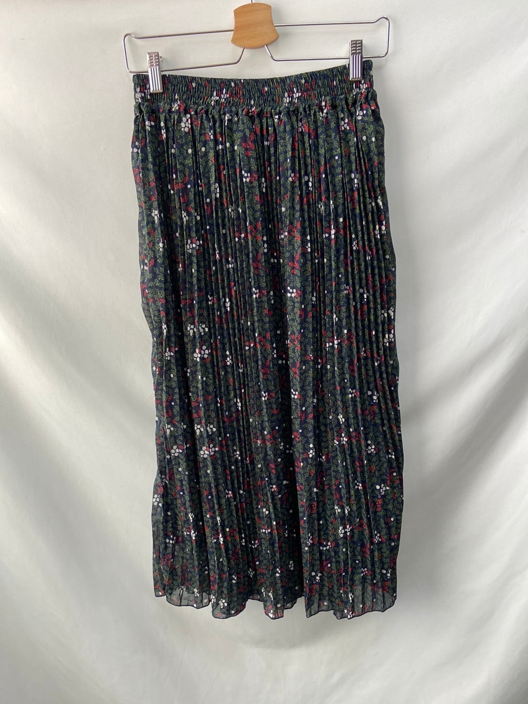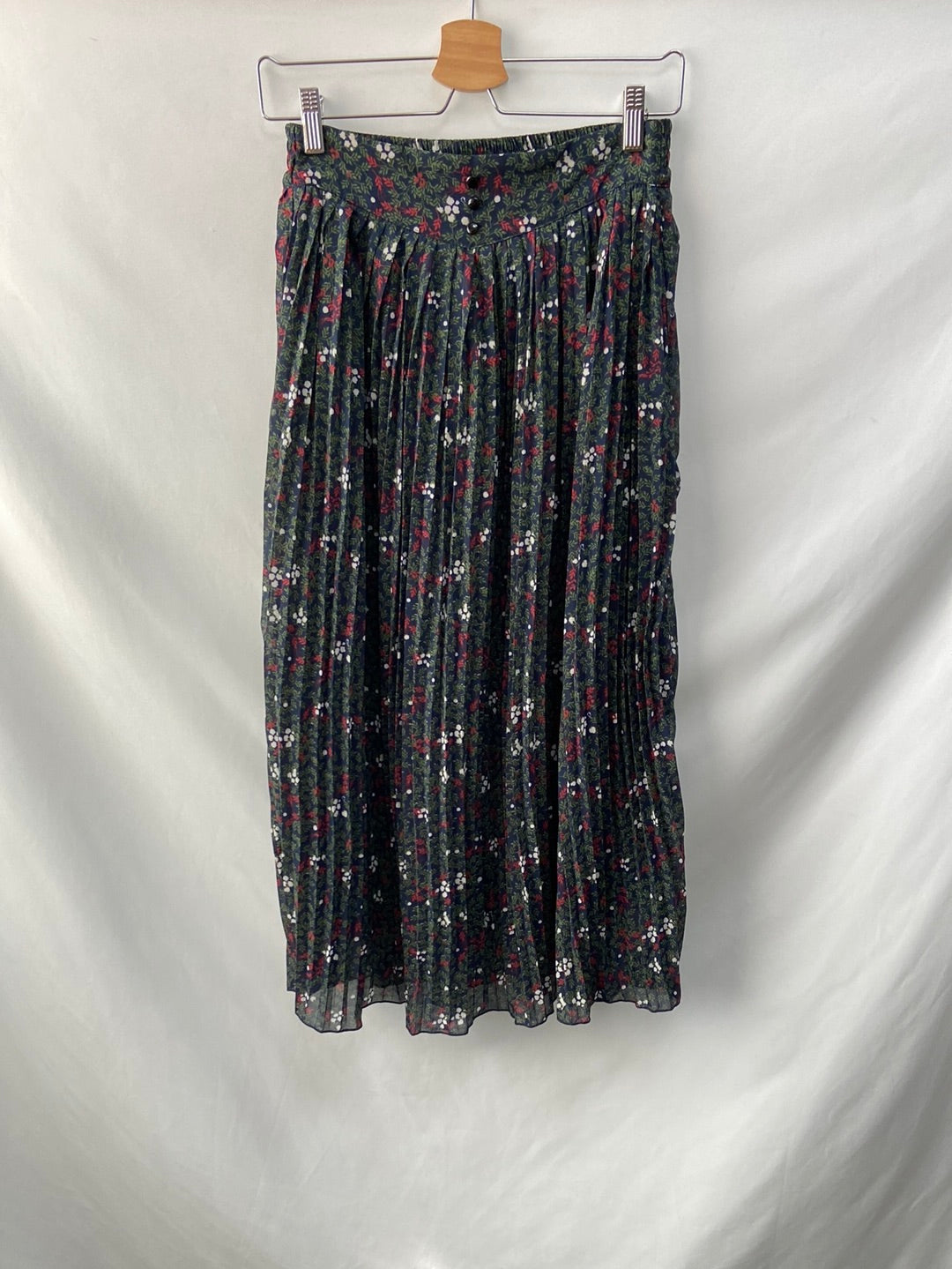 Kaporal. Fada midi azul con florecitas. Plidasa y fluida. Cintura elástica. Largo 86 cm