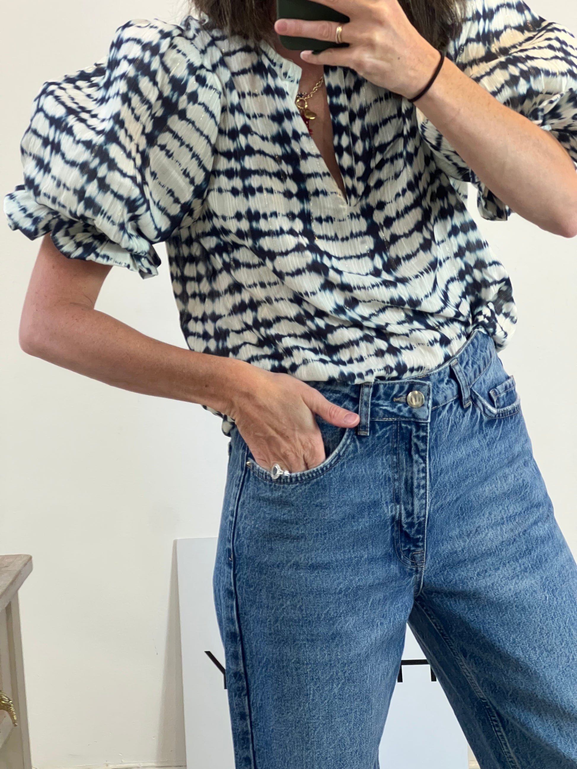 Blusa fluida tie dye con mangas abullonadas. de sisa a sisa 52 cm largo 62 cm