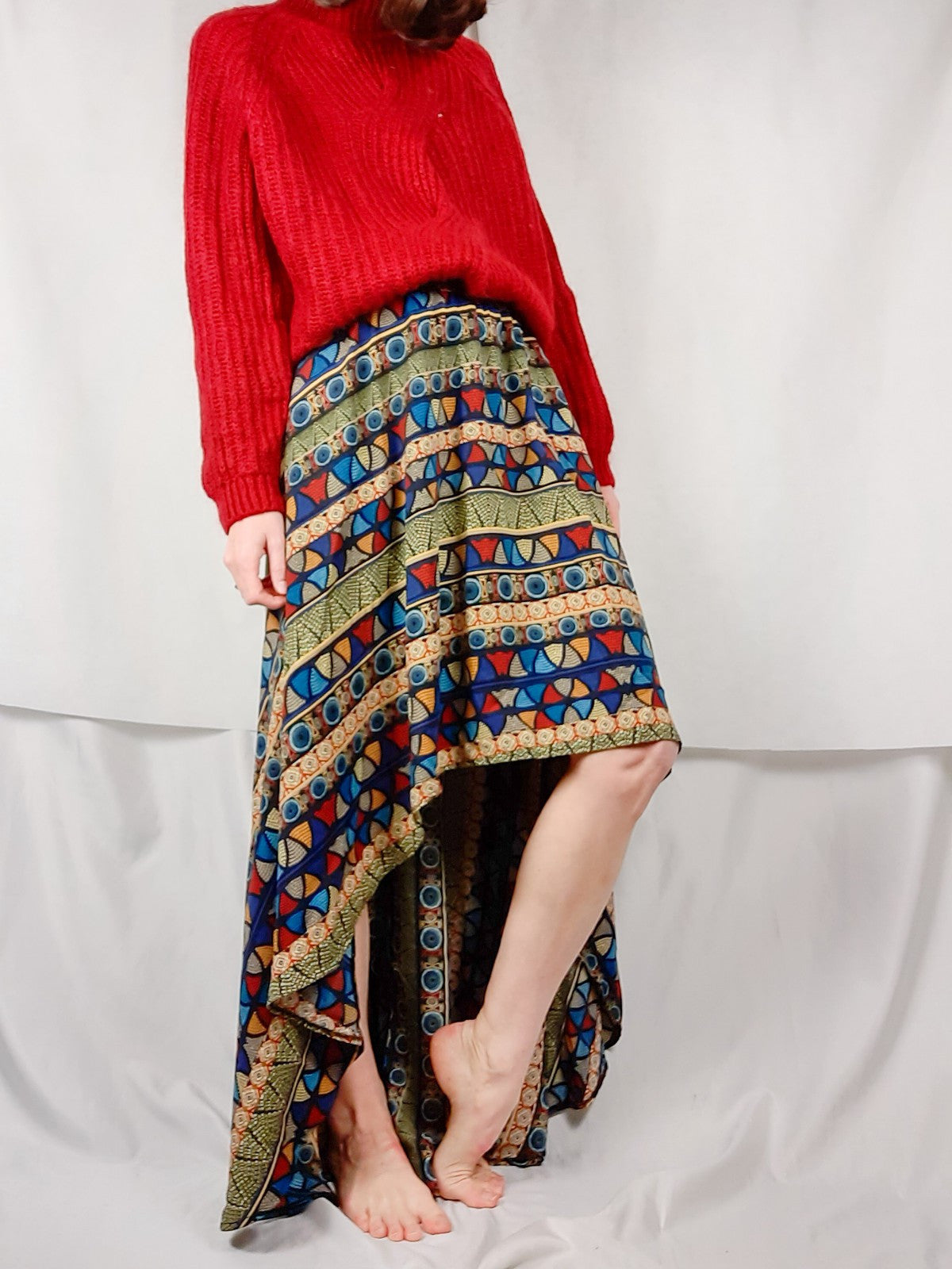 Free for humanity falda asimetría estampados con cintura elástica. Largos: 58 y 108 cm