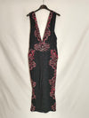Peto largo negro fluido con florecitas y escote pronunciado. 100%algodón