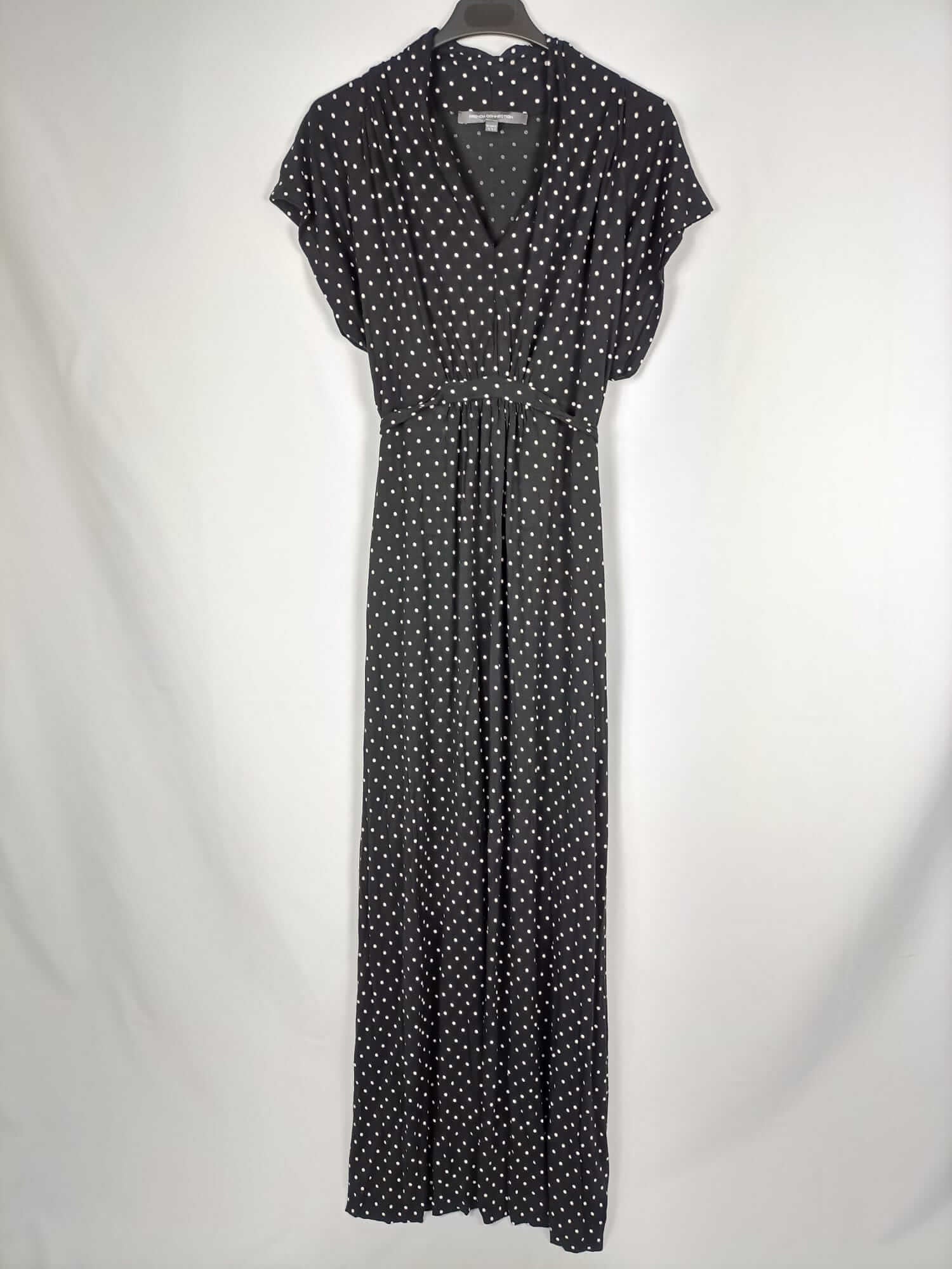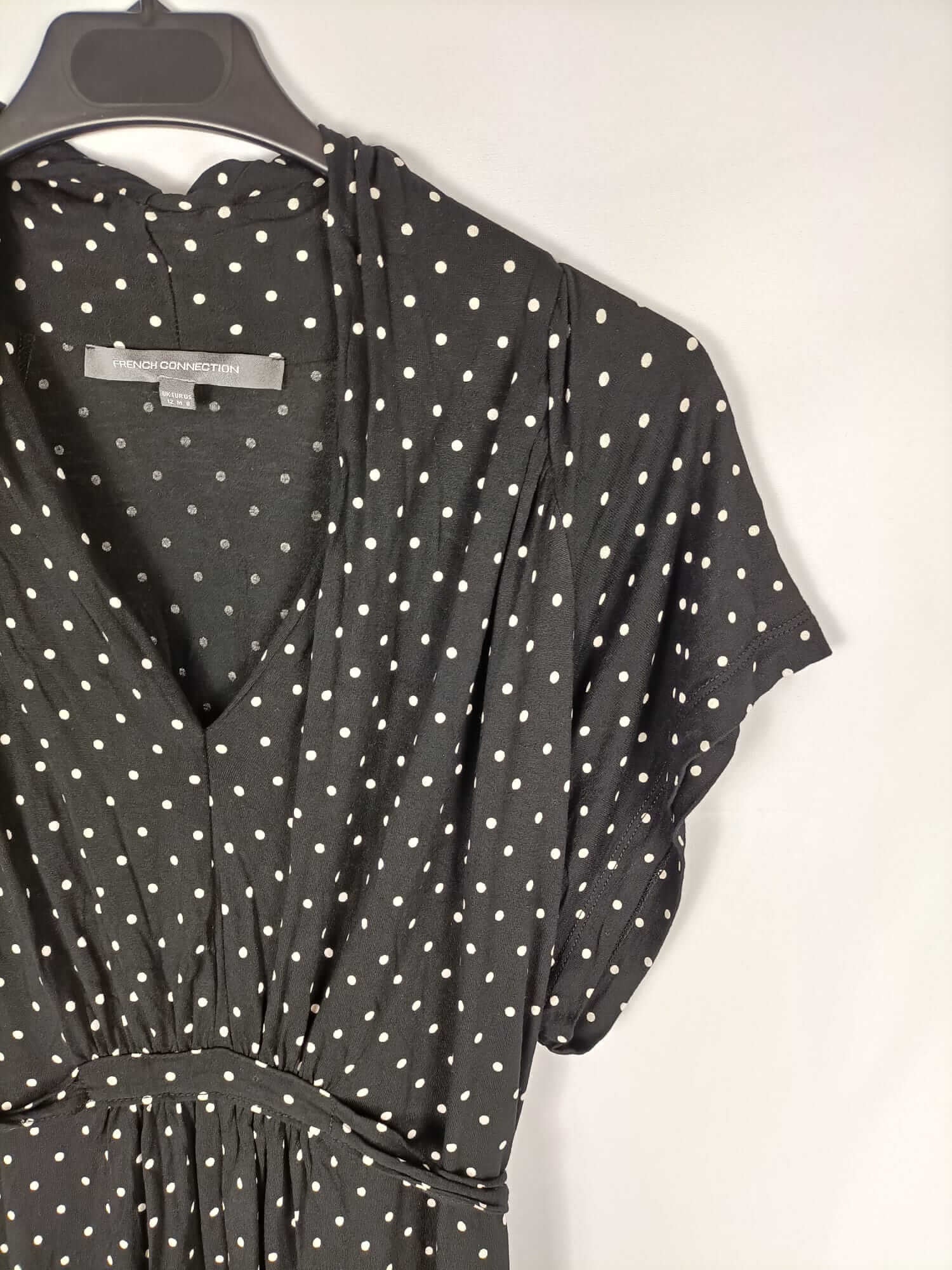 FRENCH CONNECTION. Vestido largo negro lunares T.m