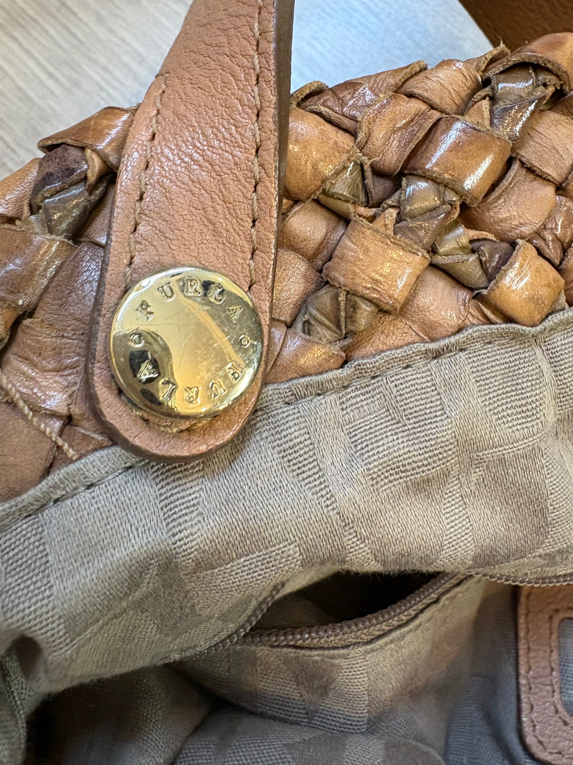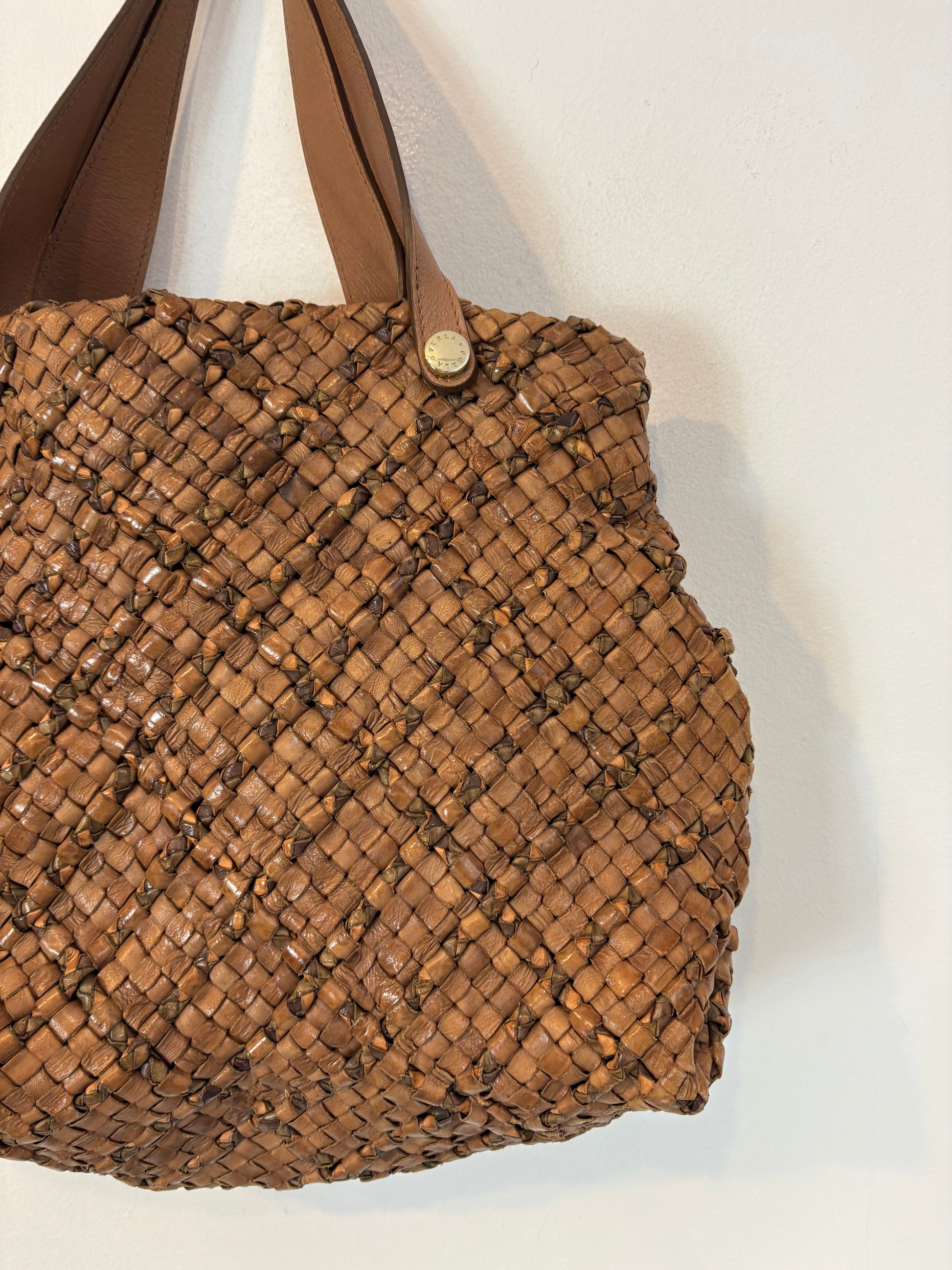 FURLA. Bolso de hombro piel trenzada