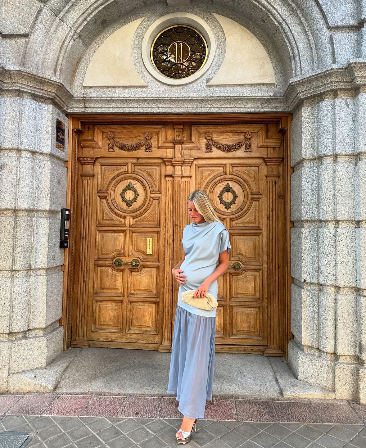 vestido largo azul mangas asimétricas y doble textura . Largo 145cm