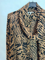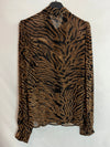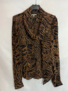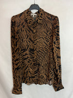 100% viscosa. Blusa estampados negros y marrones. Tejdio no elástico. Viene con un chal a juego