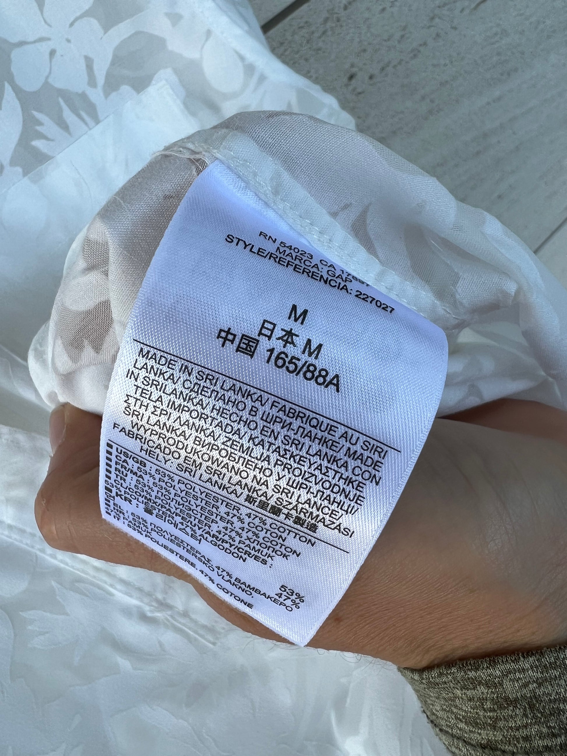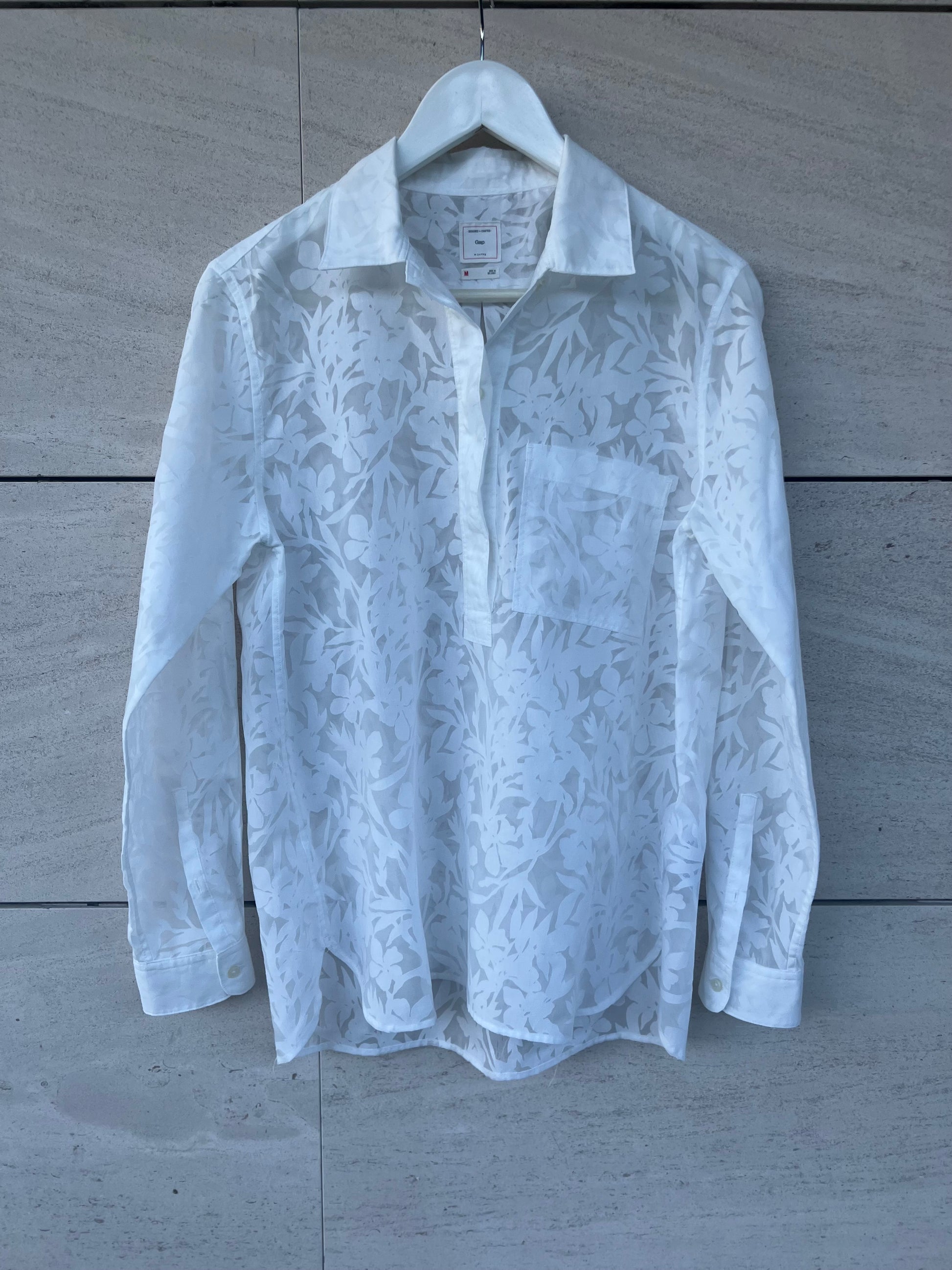 GAP. Blusa blanca dibujos semi transparente. T M