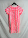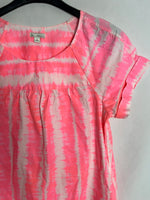 Vestido algodón corto tie dye rosa flúor. Largo 88 cm