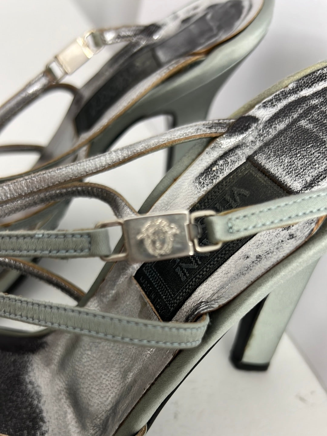 GIANNI VERSACE. Sandalia tiras azul claro. T 38
