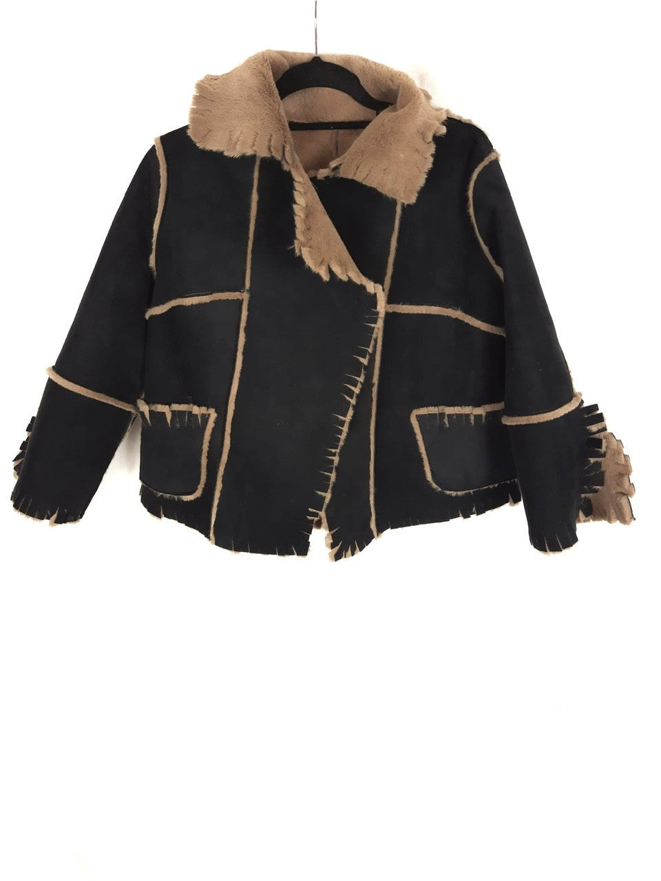 Gilles ricart. Cazadora de antelina negro con peloto camel en el interior y detalles por fuera. No elástico. De sisa a sisa 50 cm largo 58 cm.