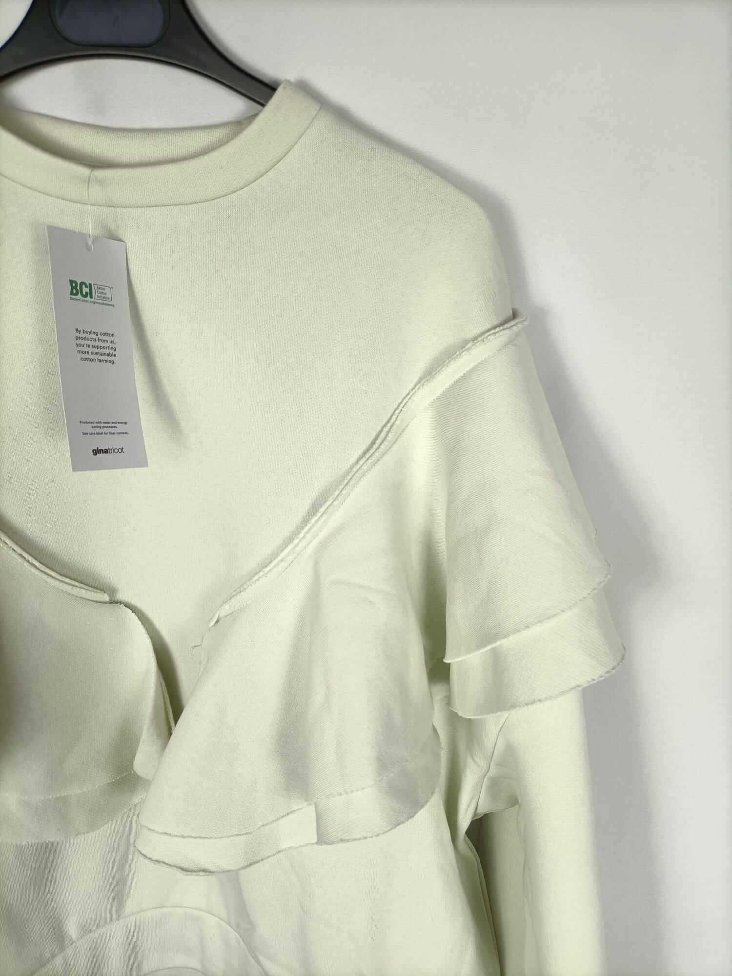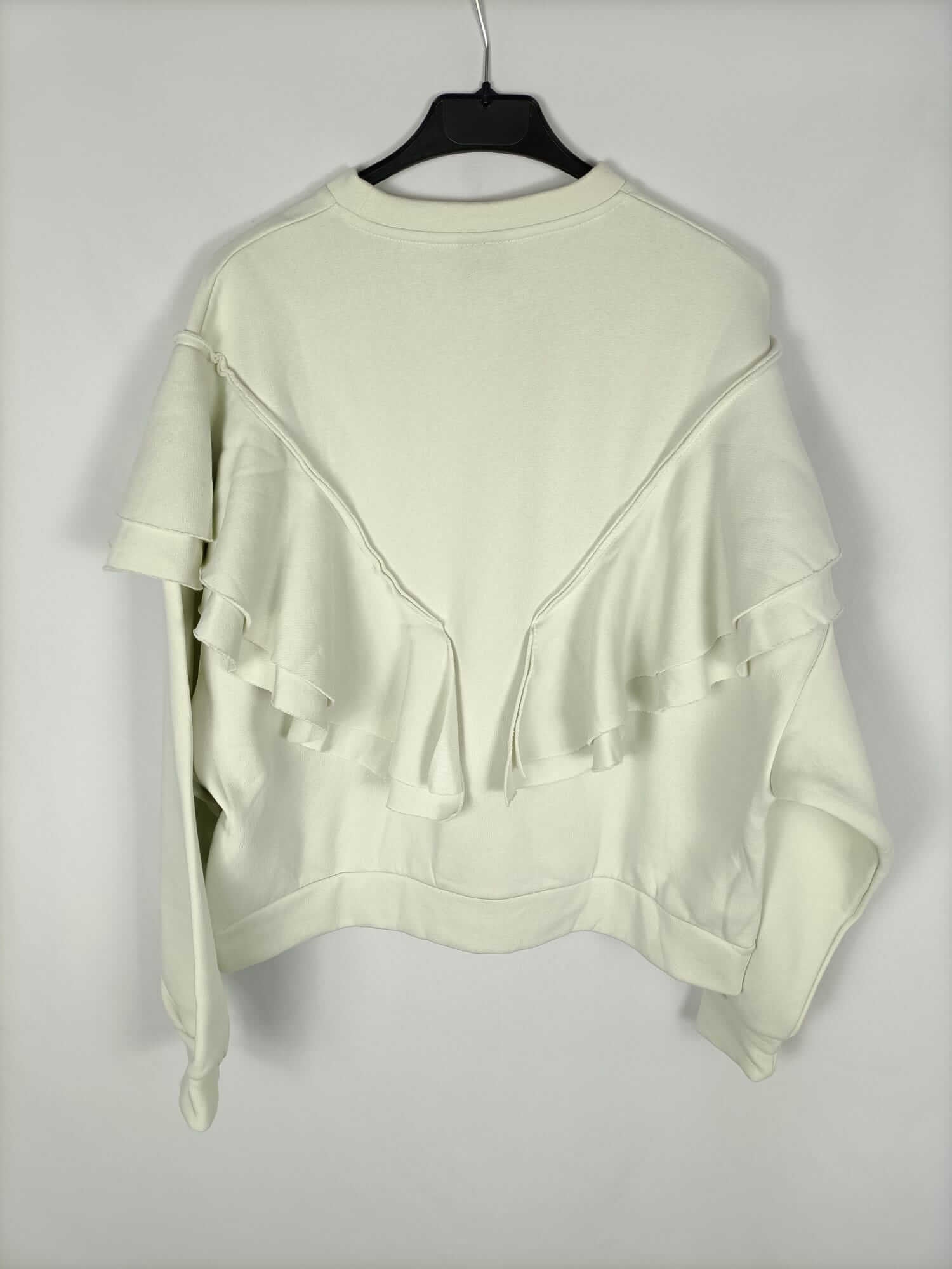Ginatricot. S. NUEVO CON ETIQUETA. Sudadera verde pastel gordita con volantes. Elastica. Largo 62 cm