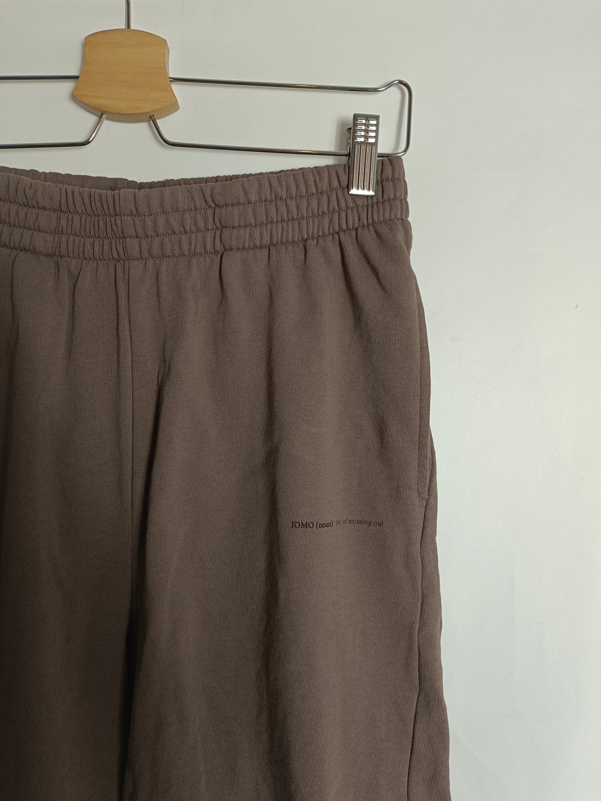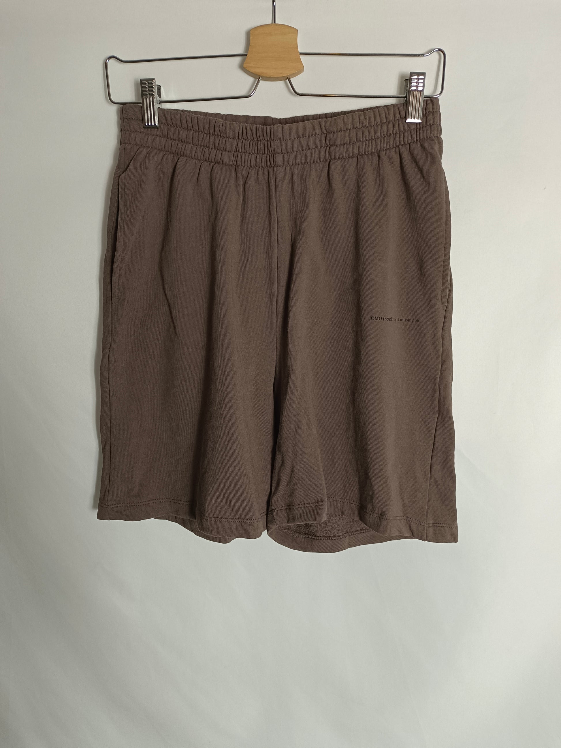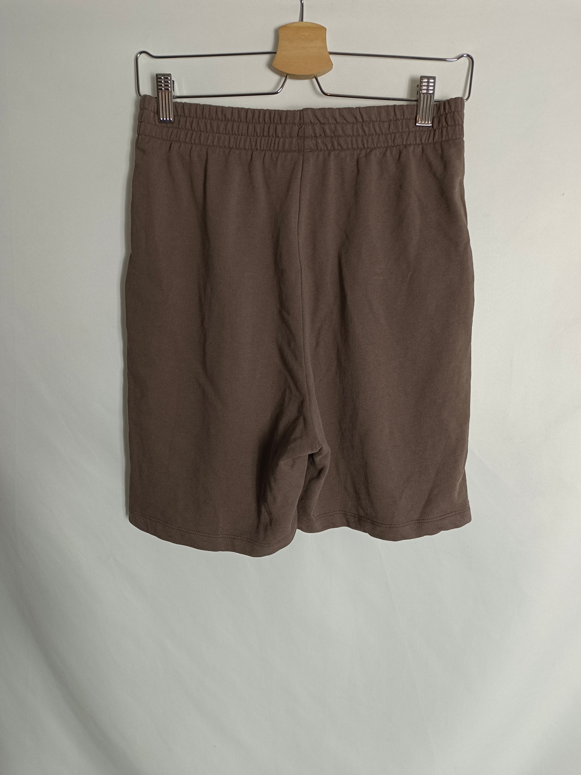 Pantalón corto marrón de tejido elástico tipo chandal fluido