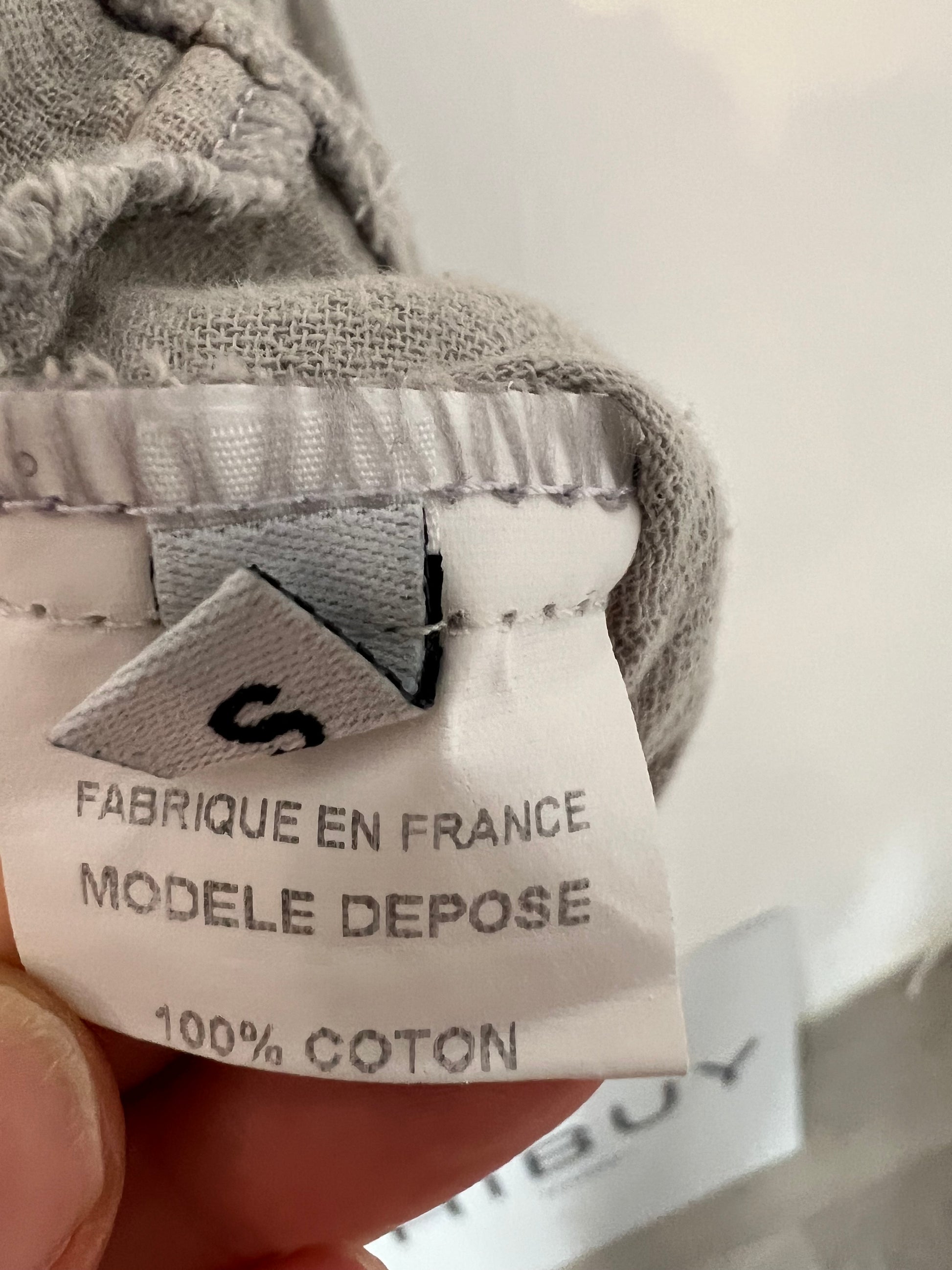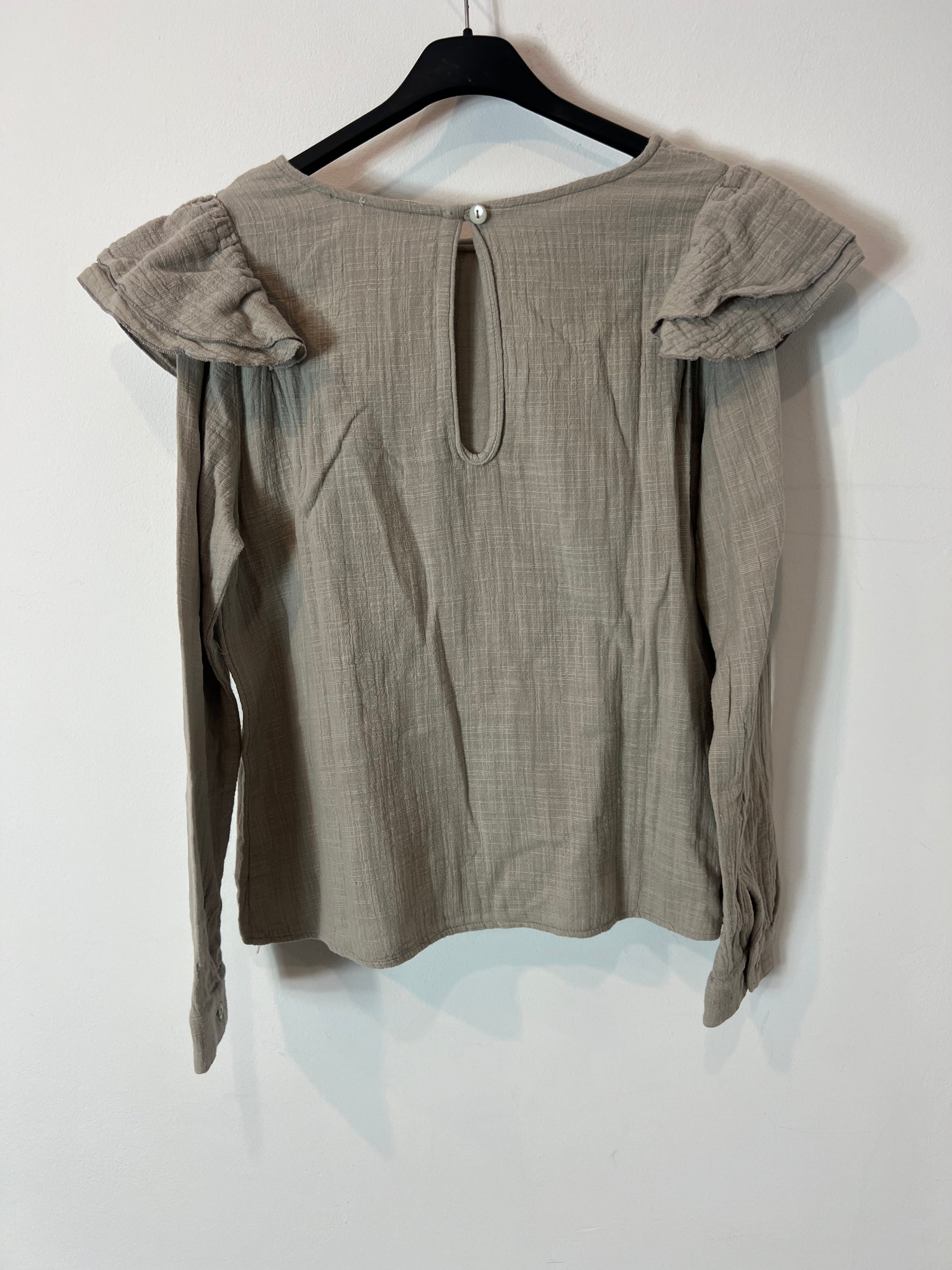 Blusa gris fluida con detalle de volantes . Espalda 52 cm ,largo 58 cm
