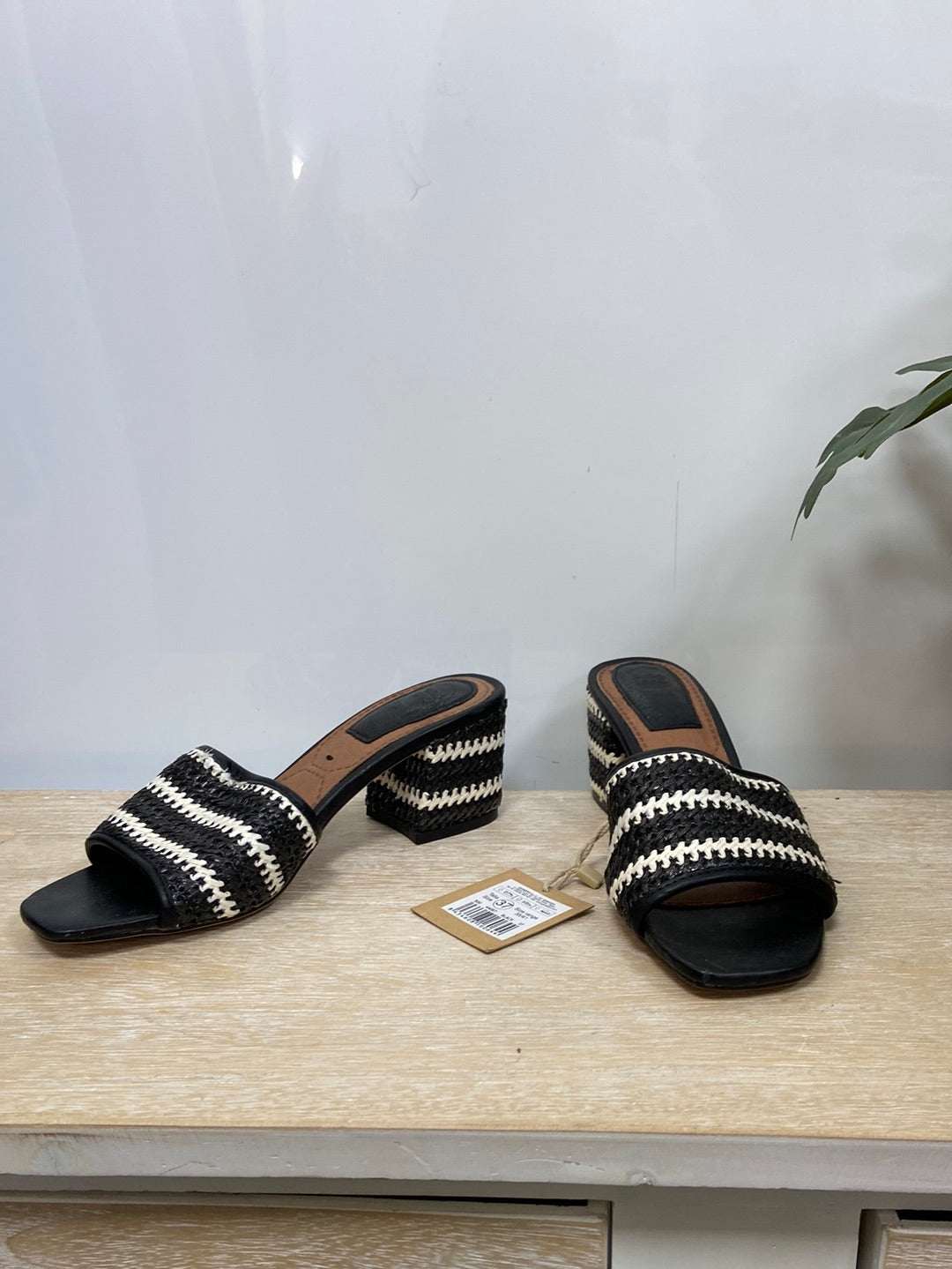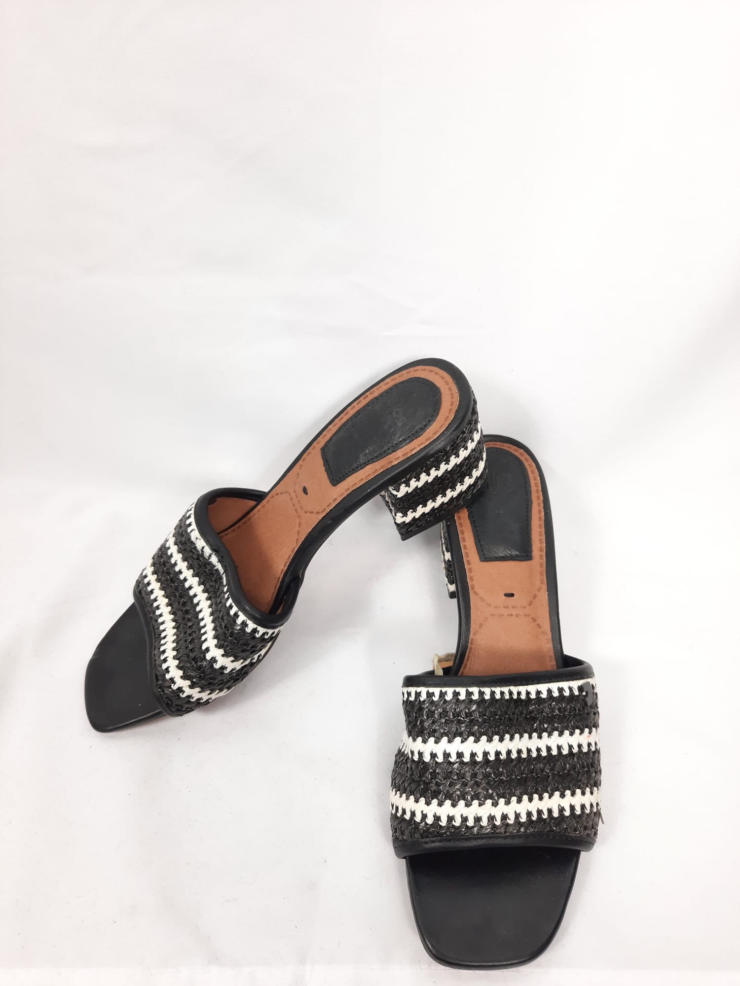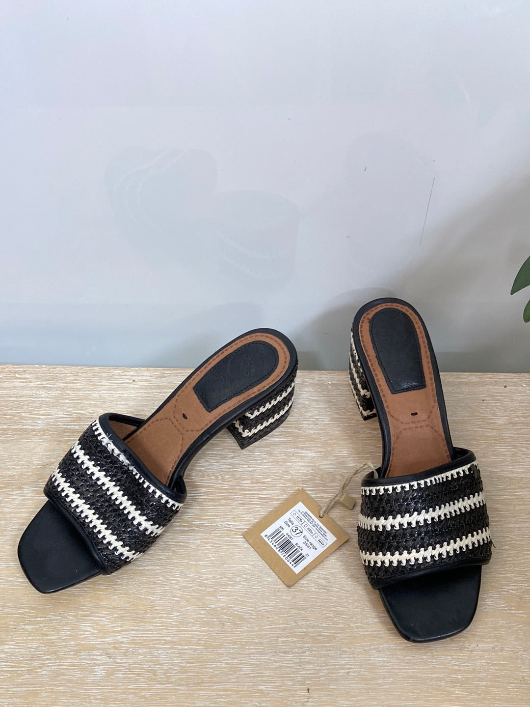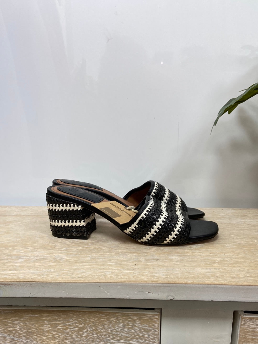 Giossepo. NUEVO CON ETIQUETA Sandalias de tacón de rafia negro y blanca. Tacón 7 cm