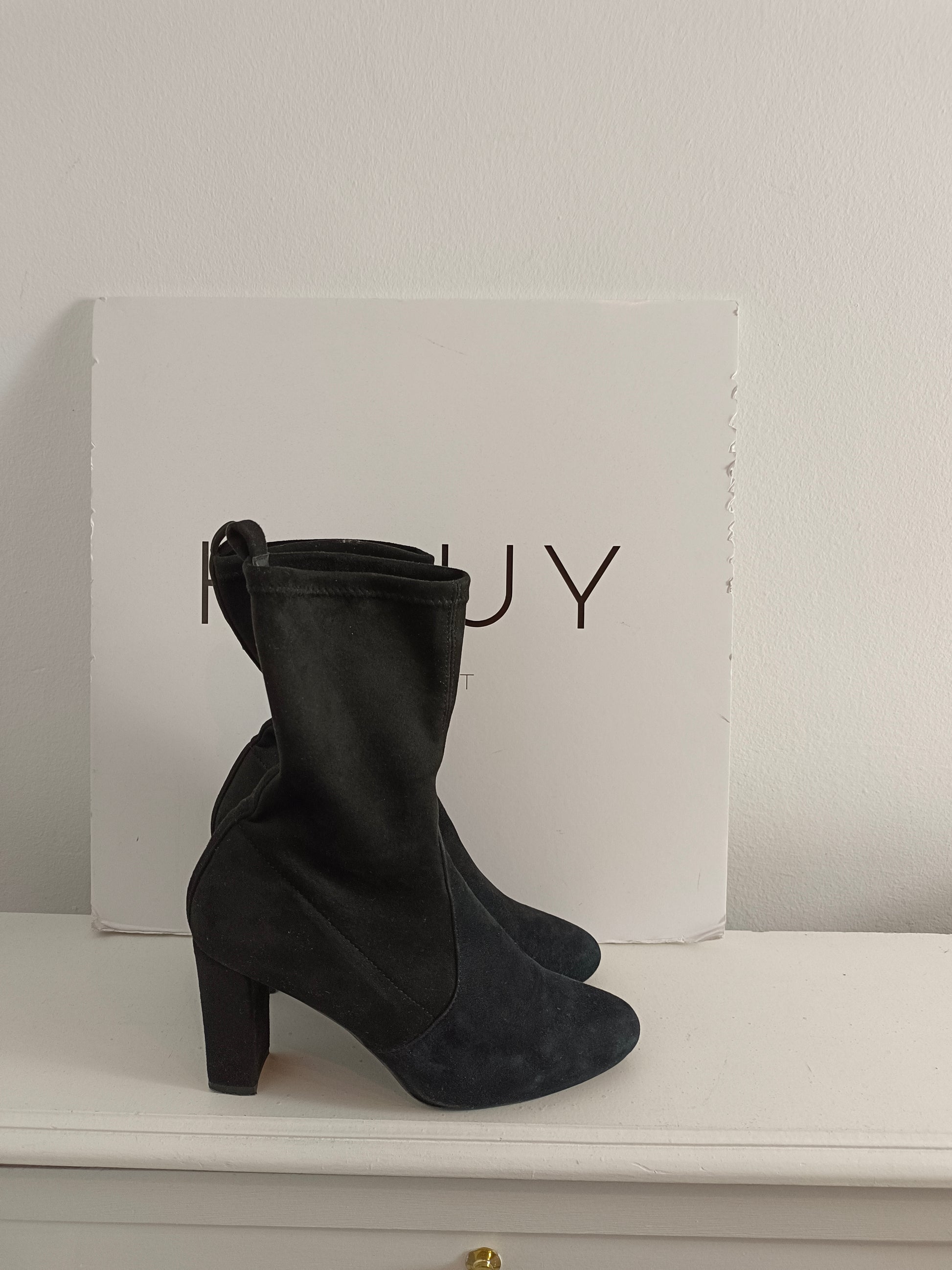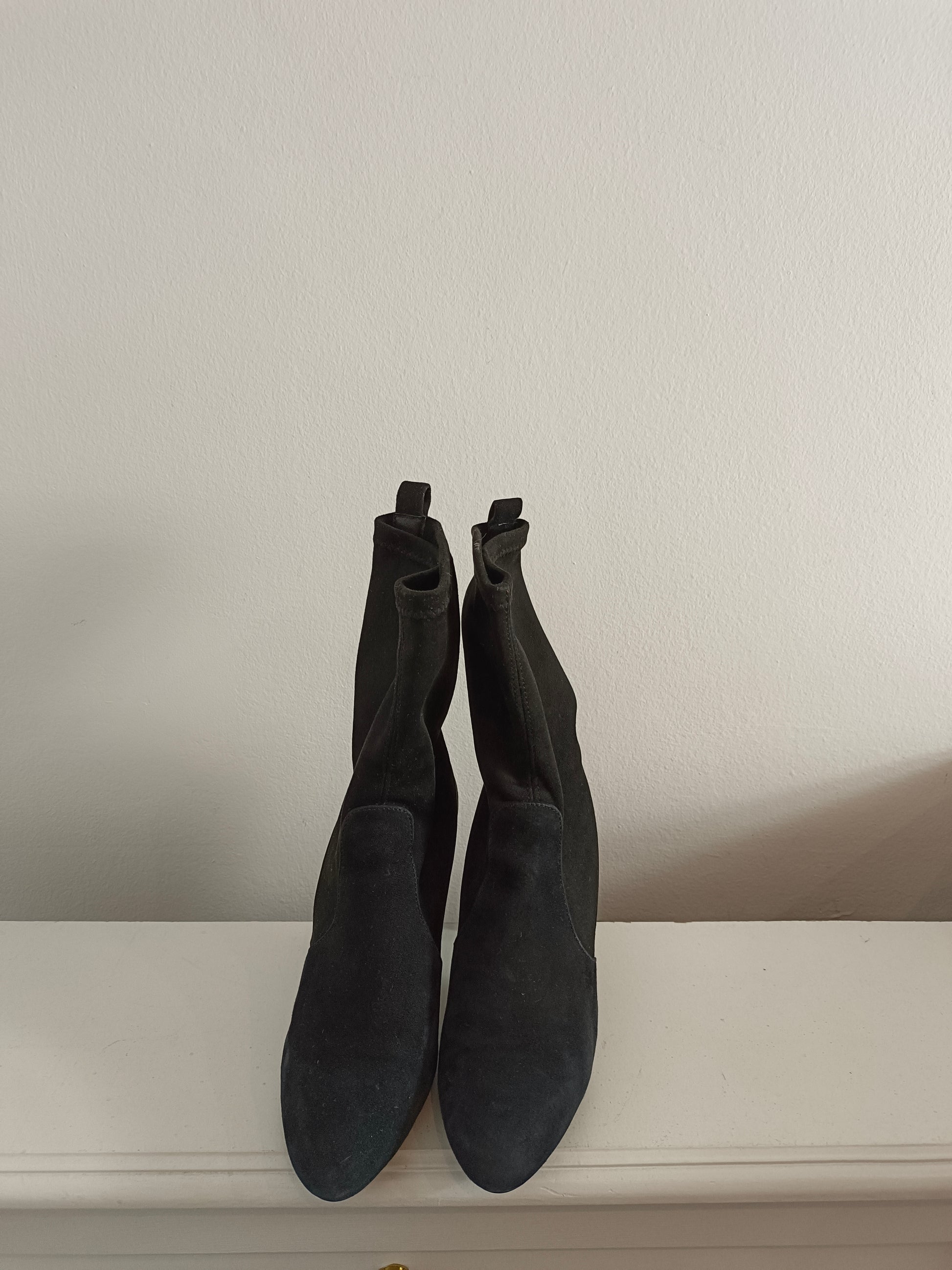 Botines con tacón de antelina negros. TARA: Rozadura en la parte interna