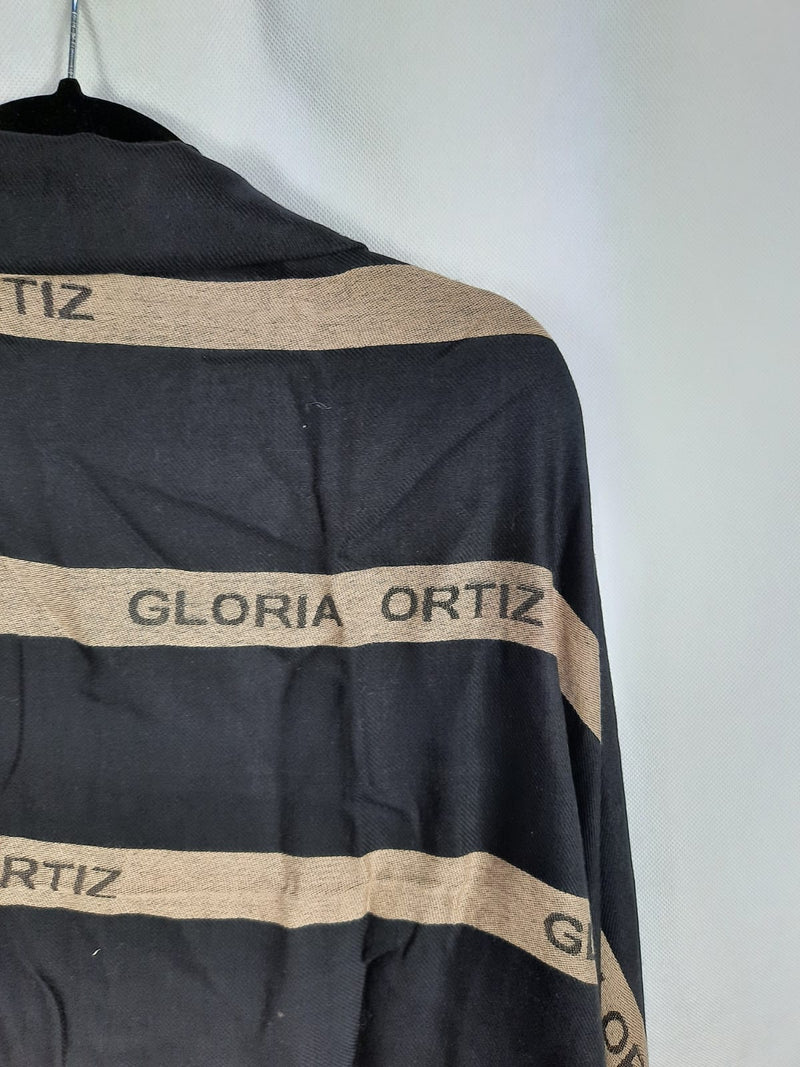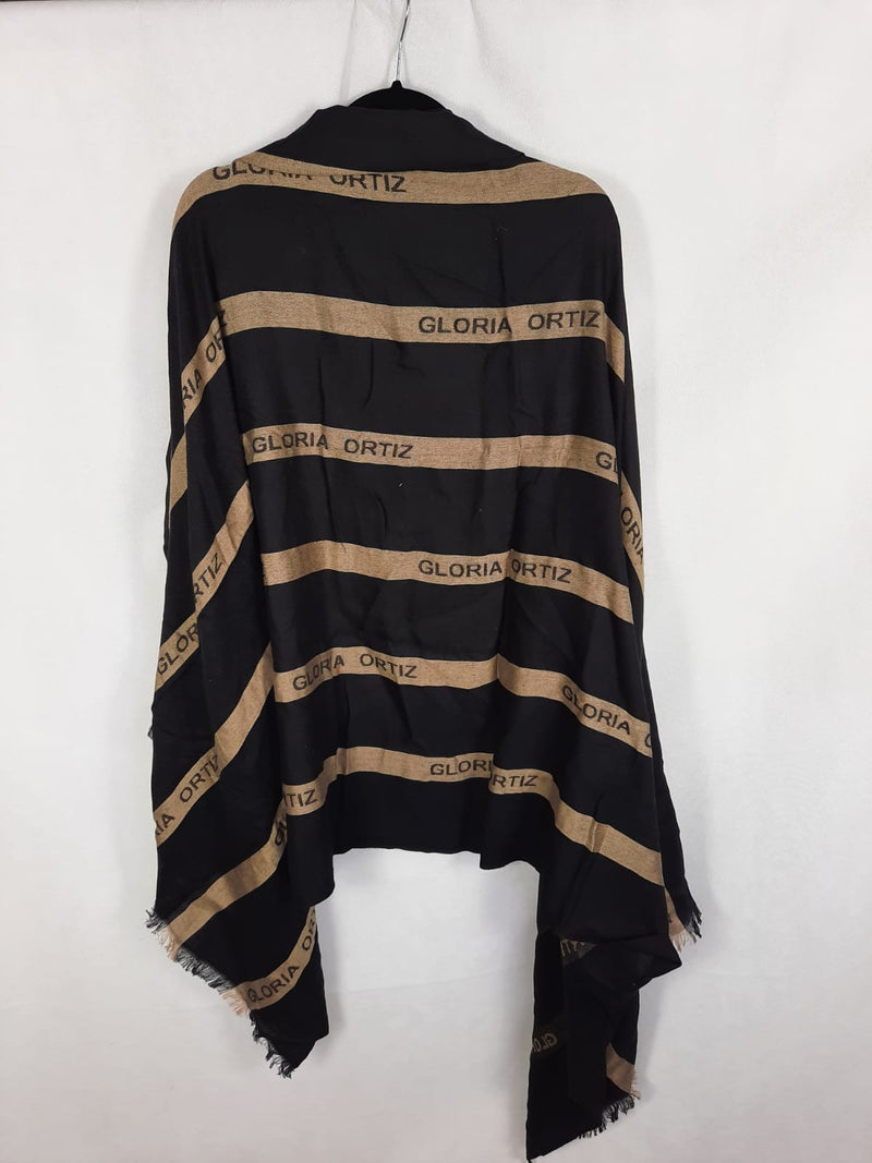 NUEVA CON ETIQUETA. Pasmina marrón chocolate con rayas camel y anagrama Gloria Ortiz