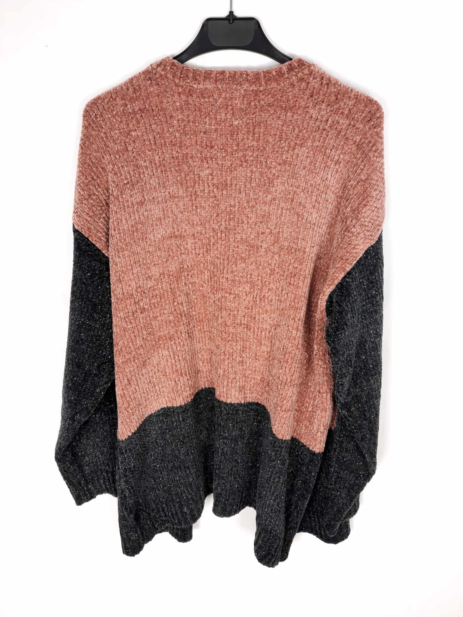 Gocco. Cardigsn bicolor rosa y negro con hilos plateados. Tejido suave estilo terciopelo. Elástico. Largo 70 cm