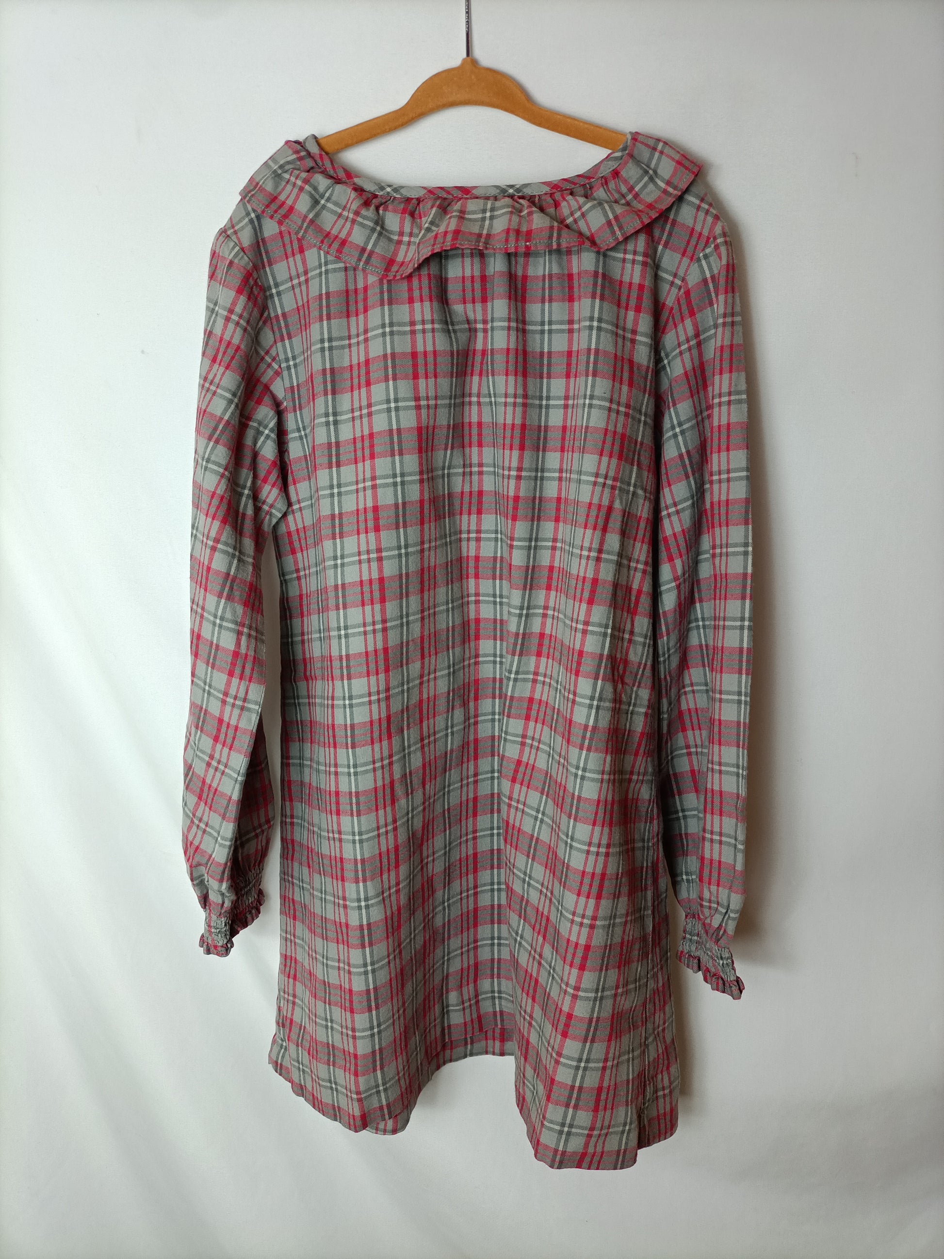 GOCCO. Vestido cuadros rojo y gris. T. 7-8 años