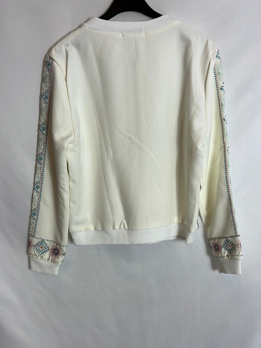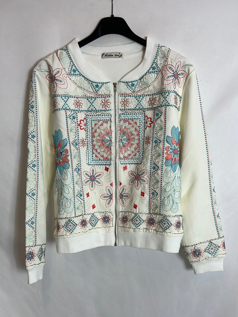 GOLDEN LIVE. Bomber blanca bordada T.s