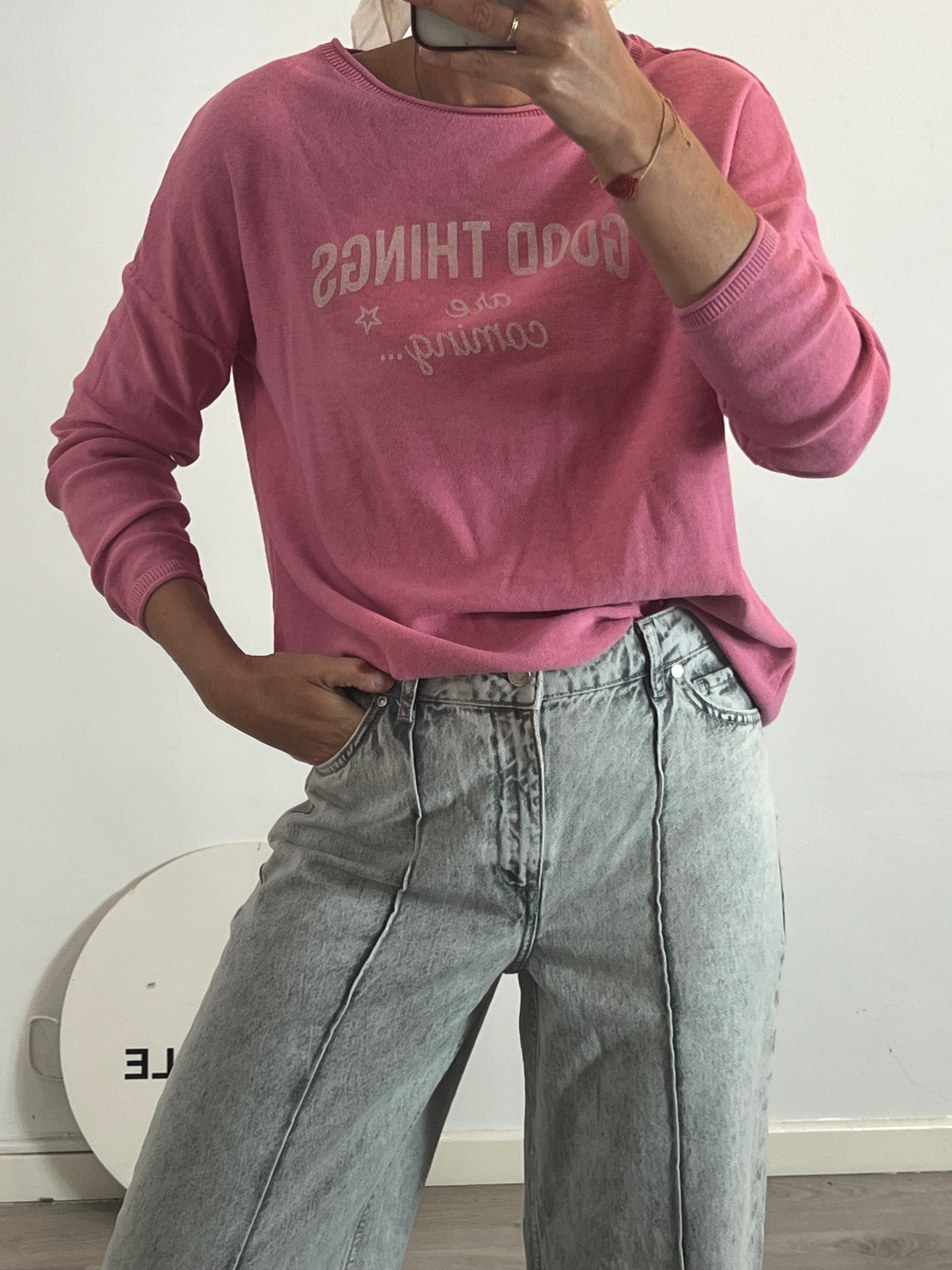 Jersey rosa con detalle de letras.