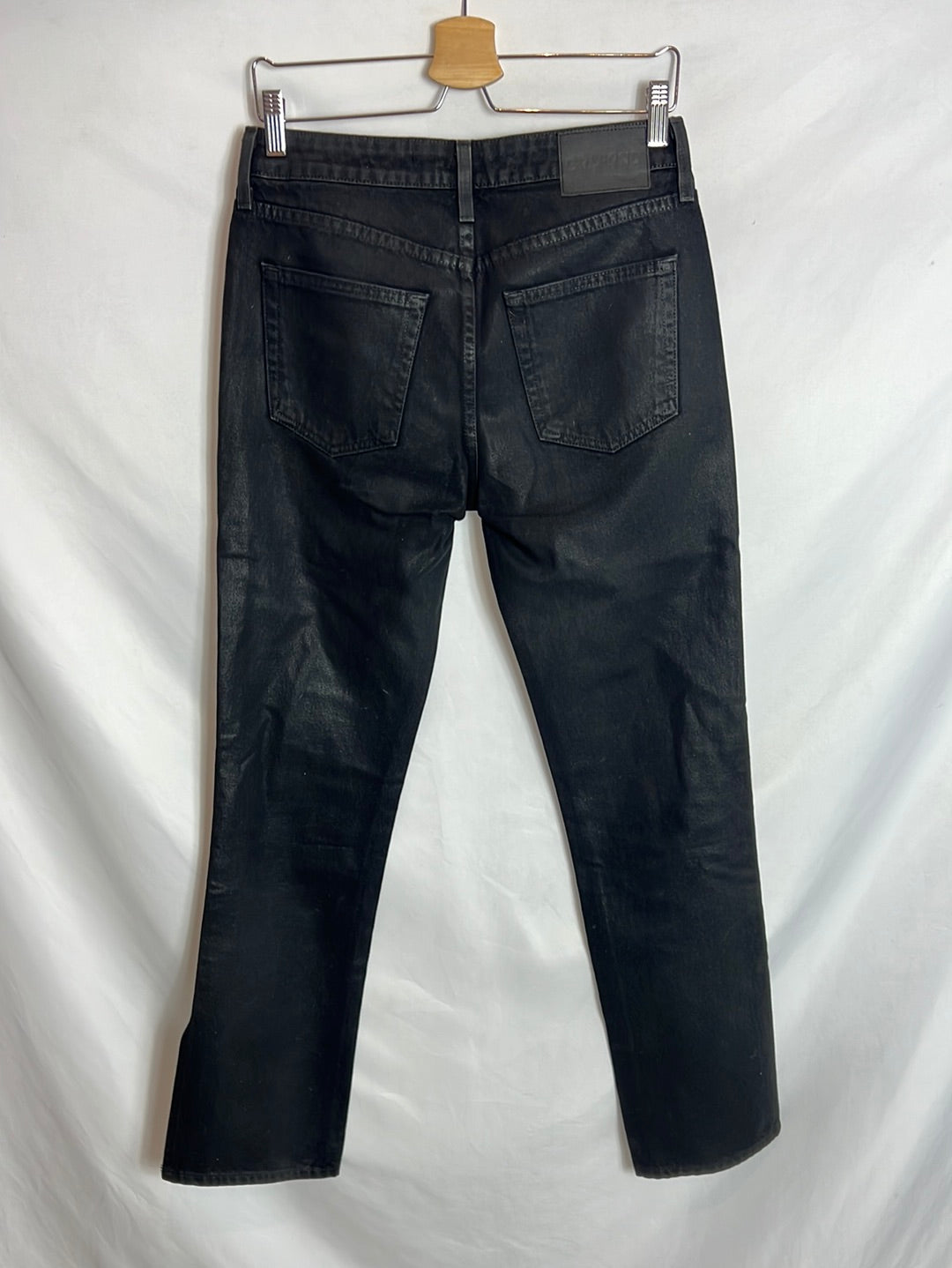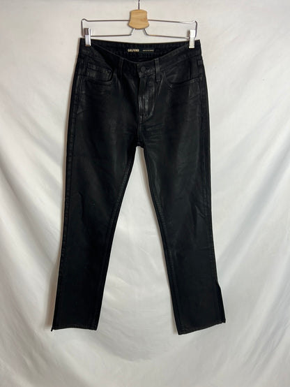 GRLFRND. Pantalón encerado negro aperturas. T 26(38)