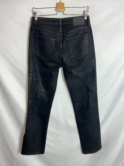 pantalón negro pitillo negro de tejido encerado. Cintura 38cm, largo 105cm
