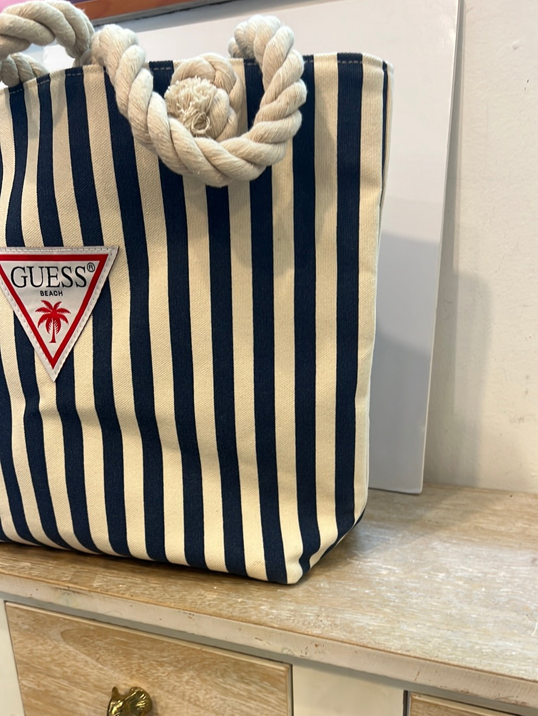 GUESS. Bolso lona rayas