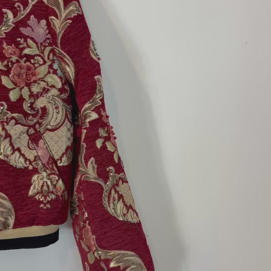 Chaqueta estilo bomber con bordados y abalorios. Espalda 50 cm, largo 53 cm. No elástico