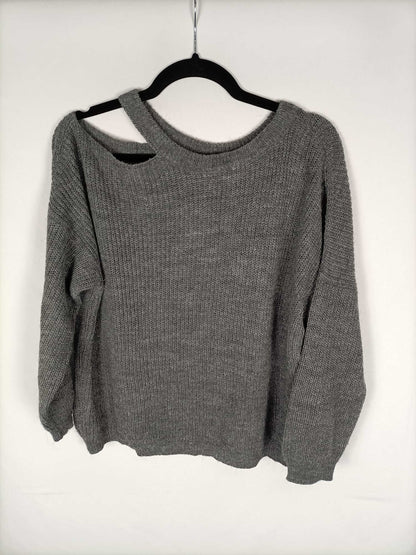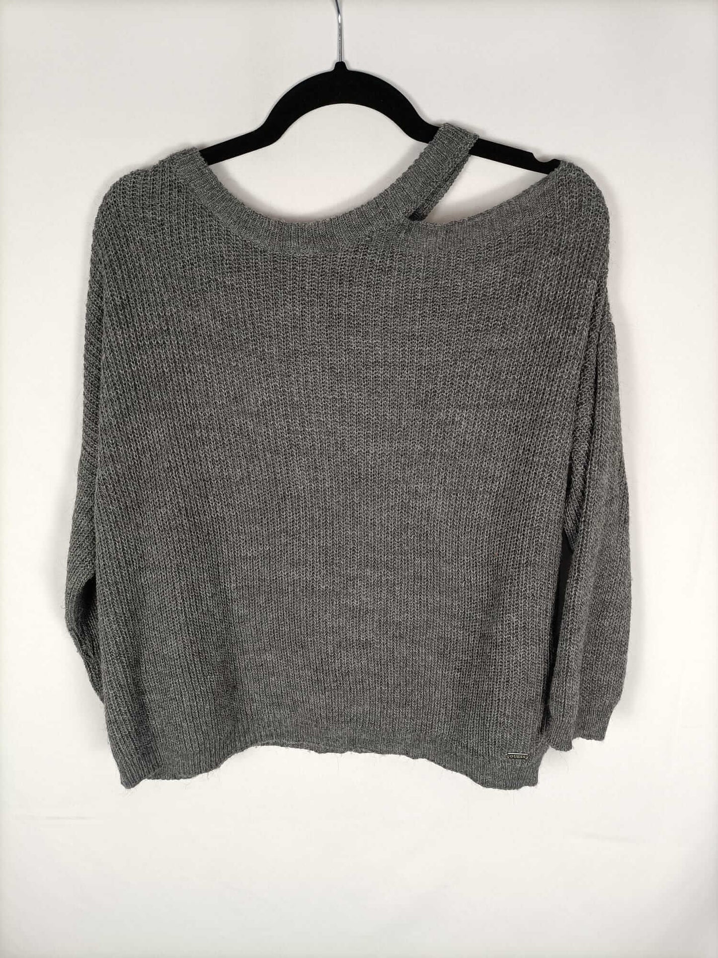 Guess. Jersey fluido gris con apertura. Elastico. Largo 58 cm