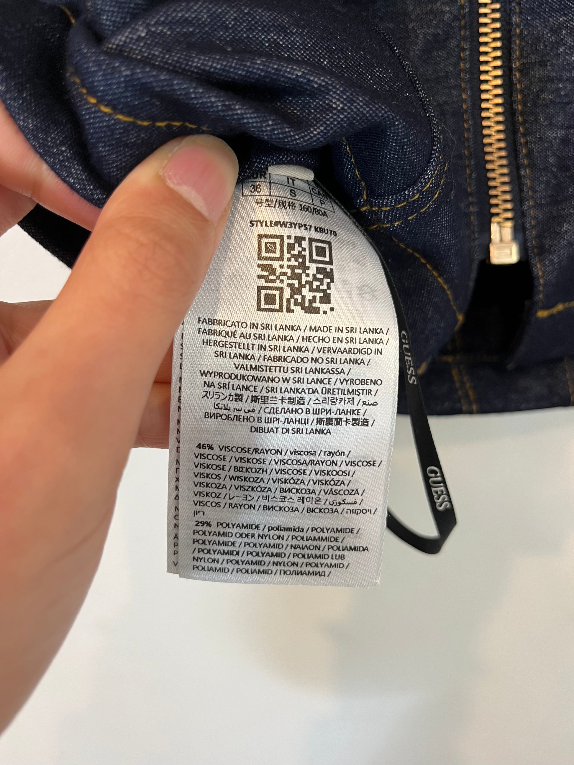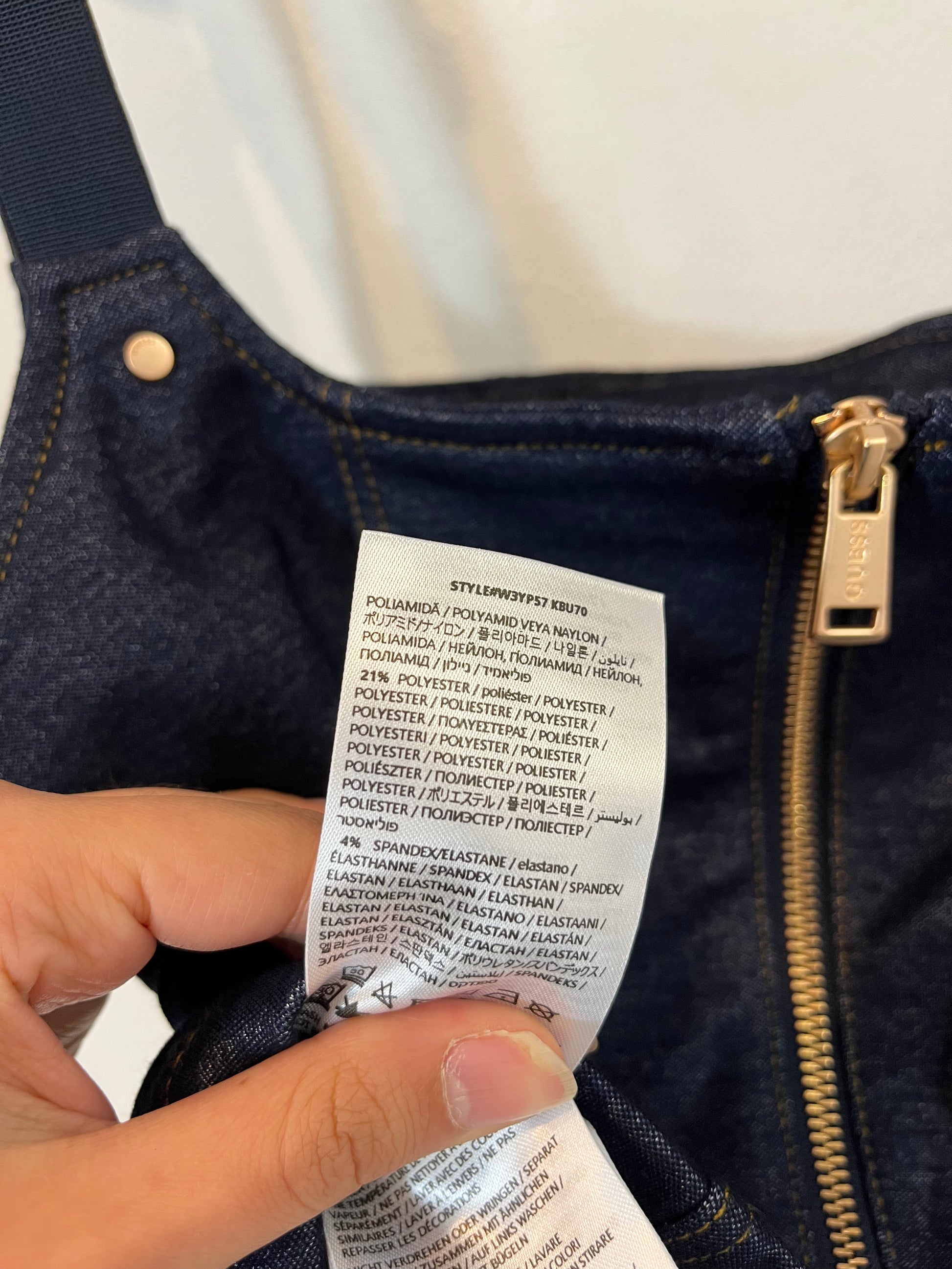 Top elástico efecto vaquero. Detalle de cremallera.
