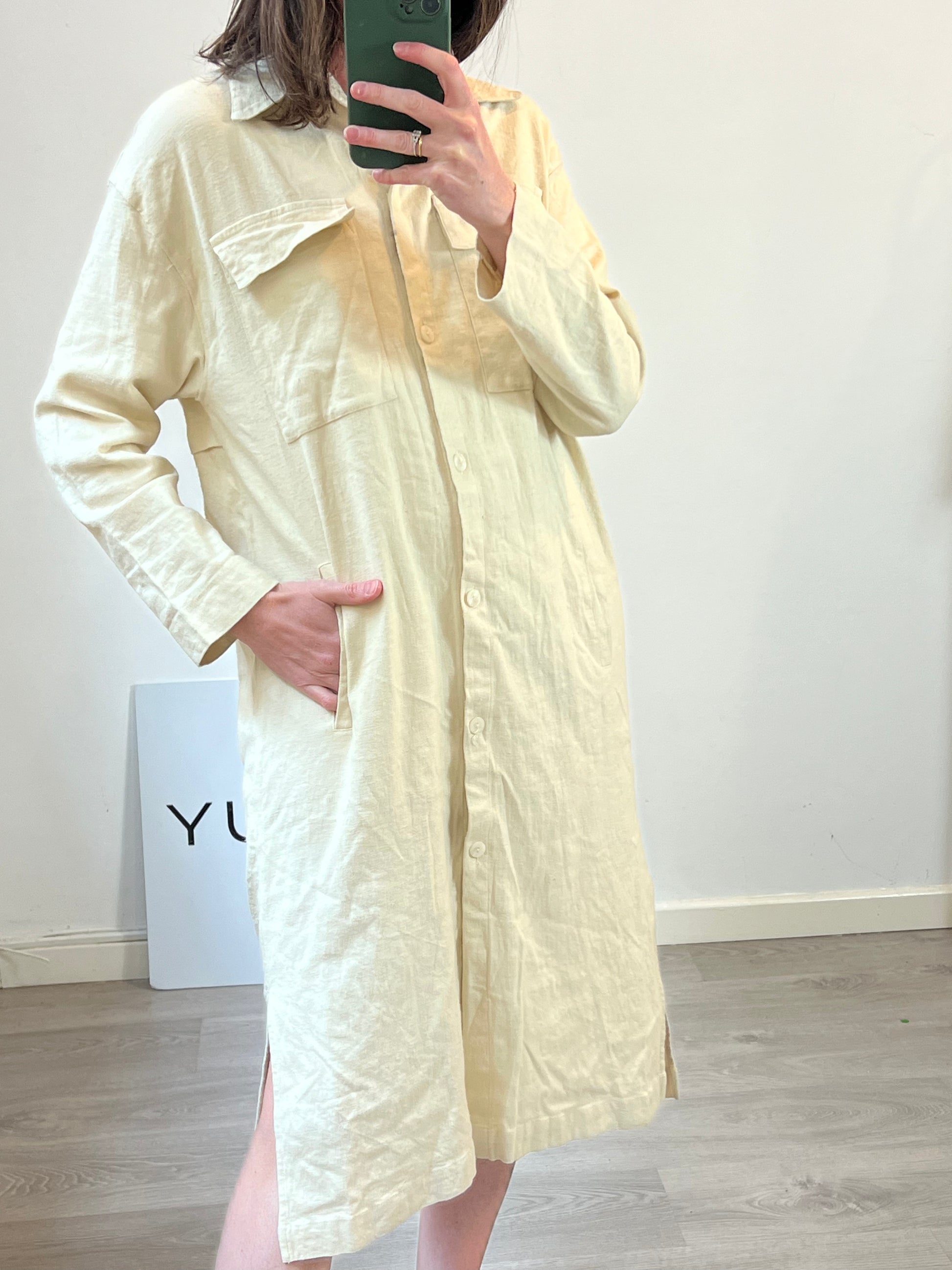Vestido largo beige abotonado estilo camisero. No elástica. de sisa a sisa 50 cm largo 106 cm