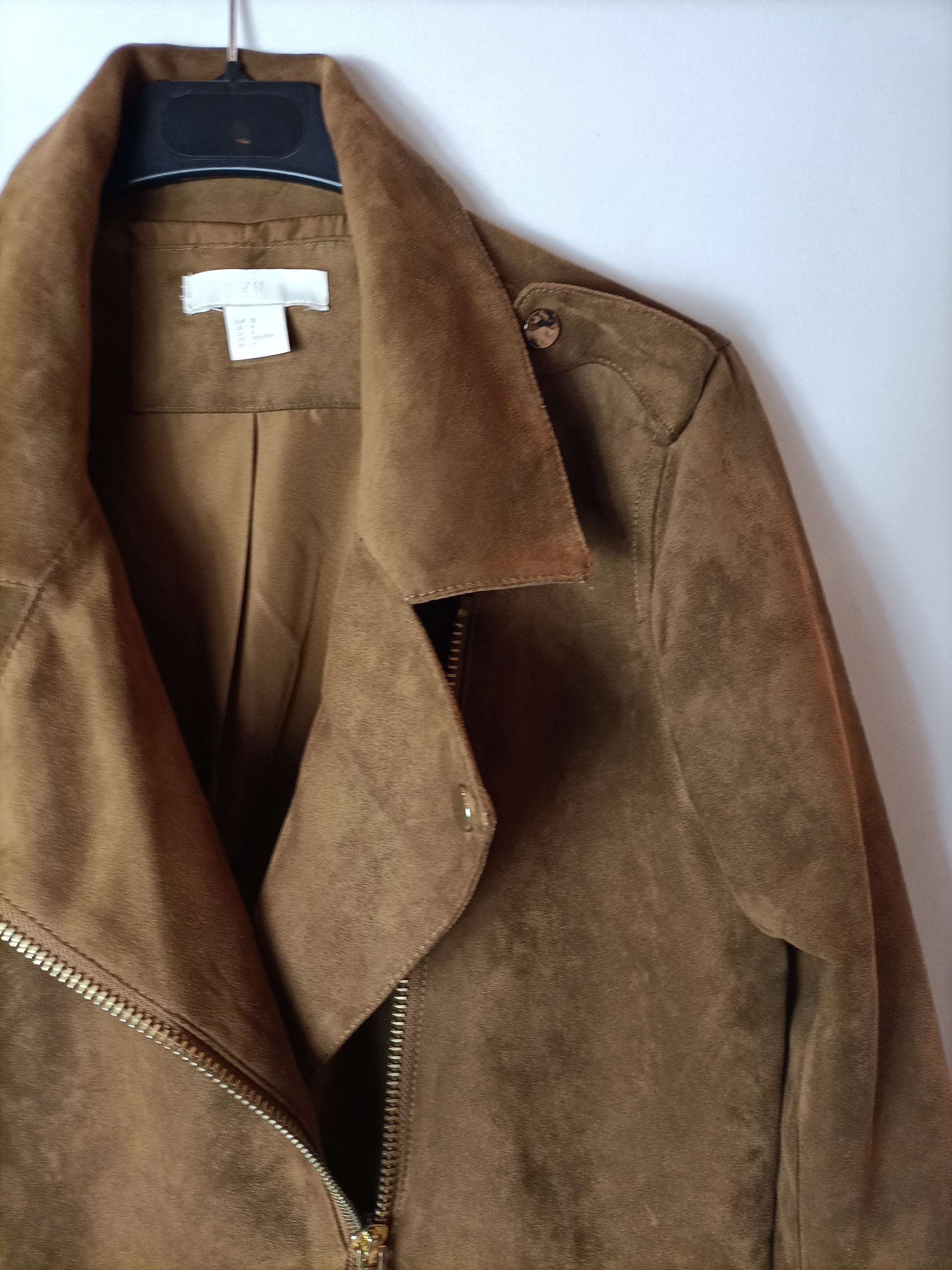 biker de antelina marrón camel con cremallera. de sisa a sisa 46 cm