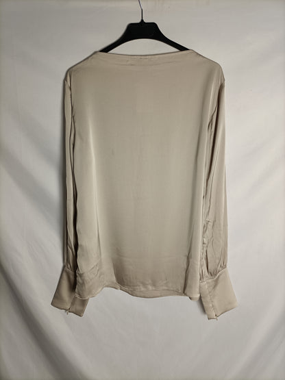 NUEVO CON ETIQUETA. Blusa beige fluida satinada