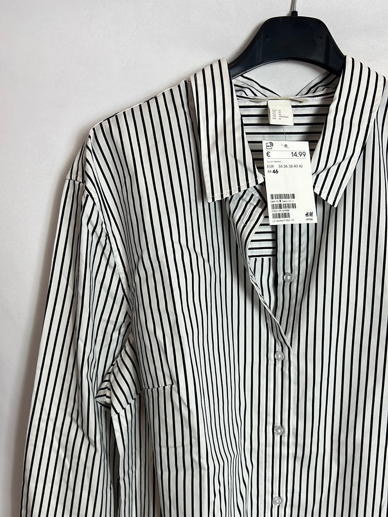 NUEVO CON ETIQUETA. Blusa blanca rayas negras popelín